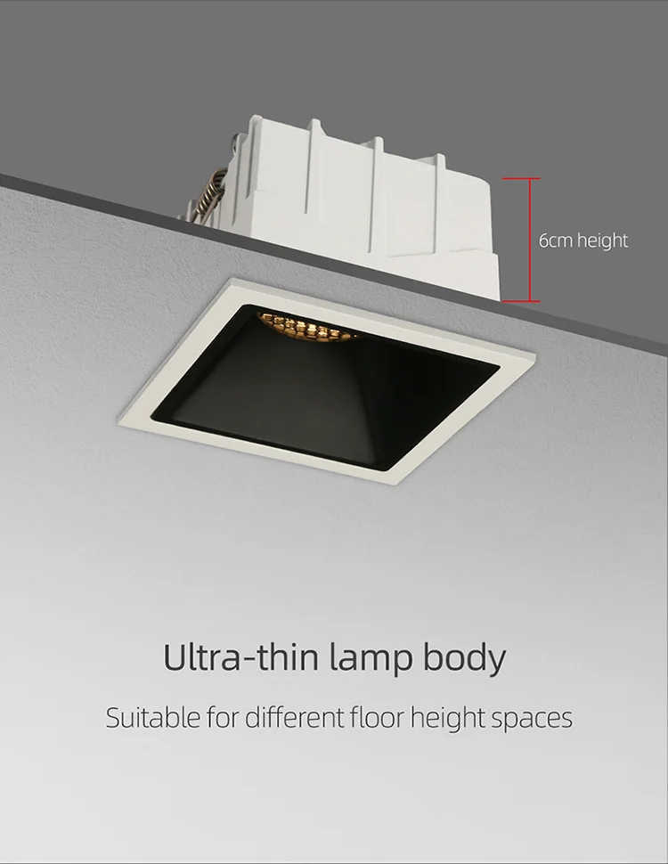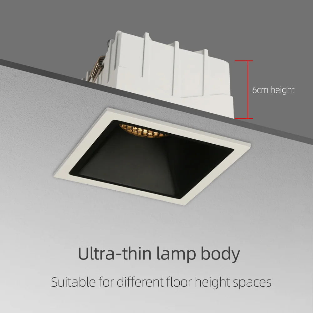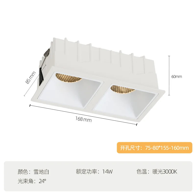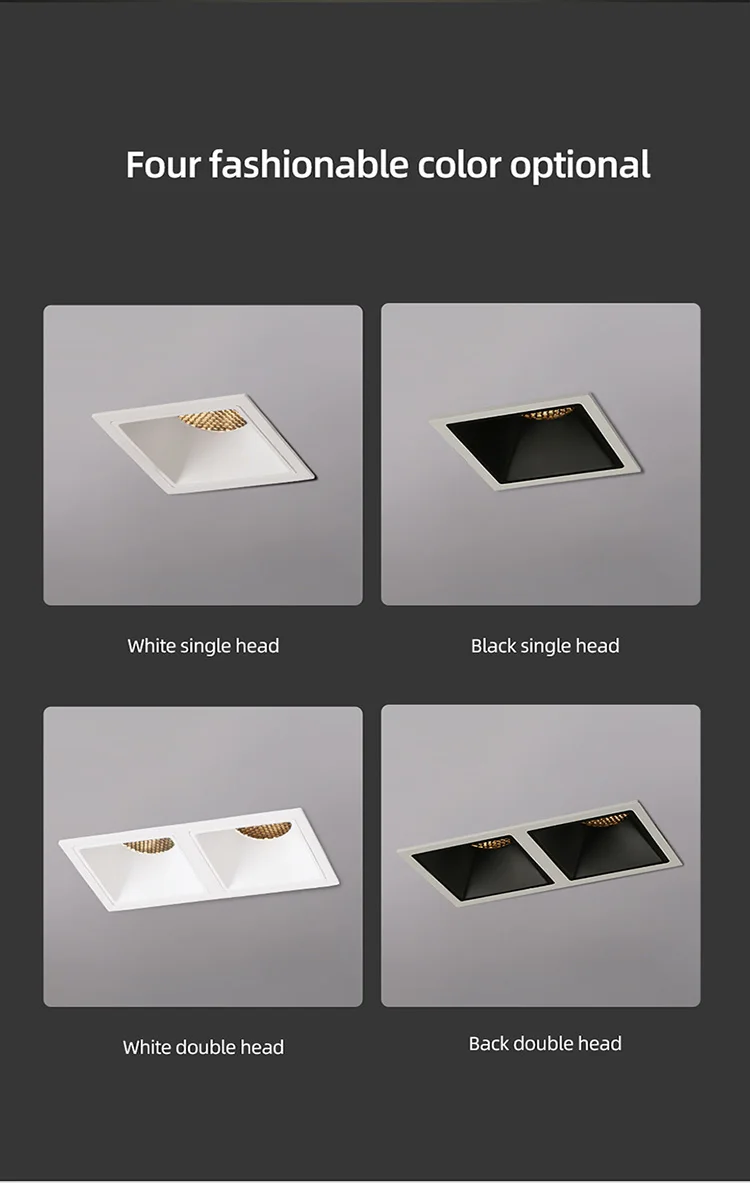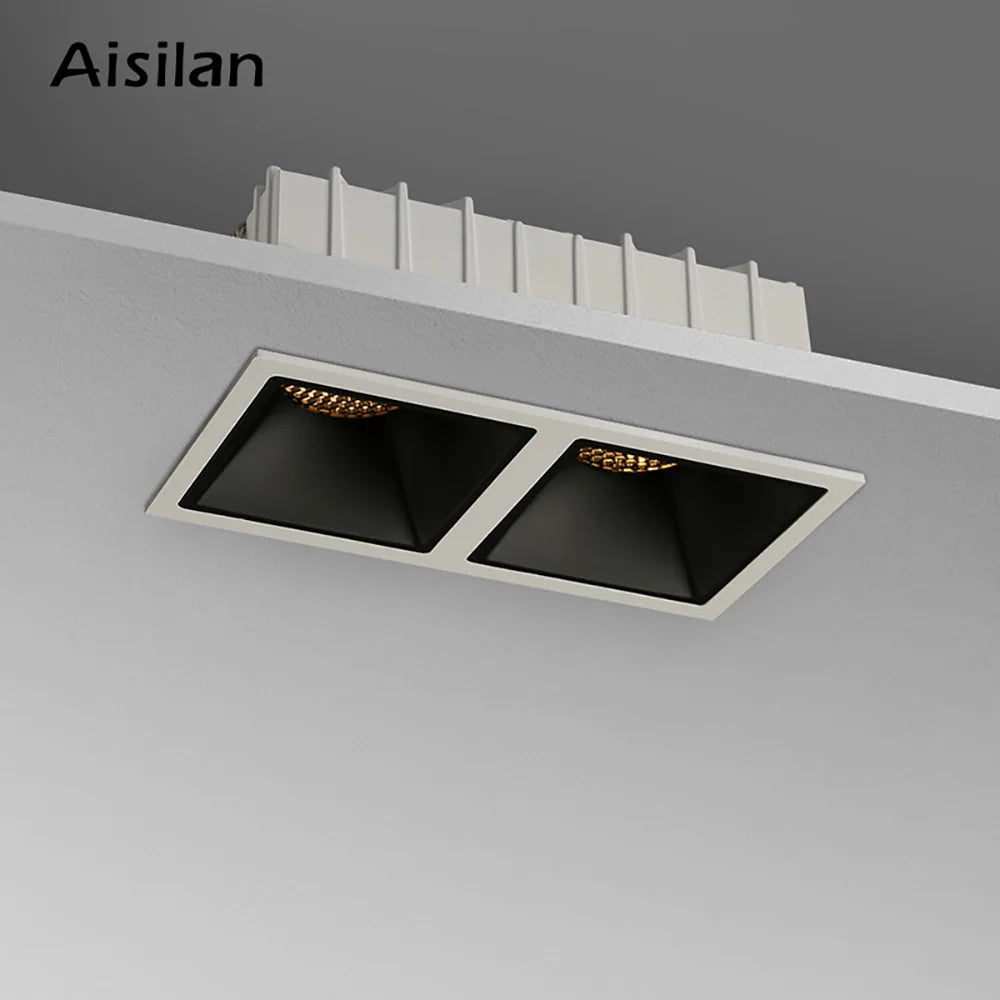 Aisilan double head 12w 24w frameless trimless square anti glare recessed COB dali 0-10v triac dimmable led spot light downlight