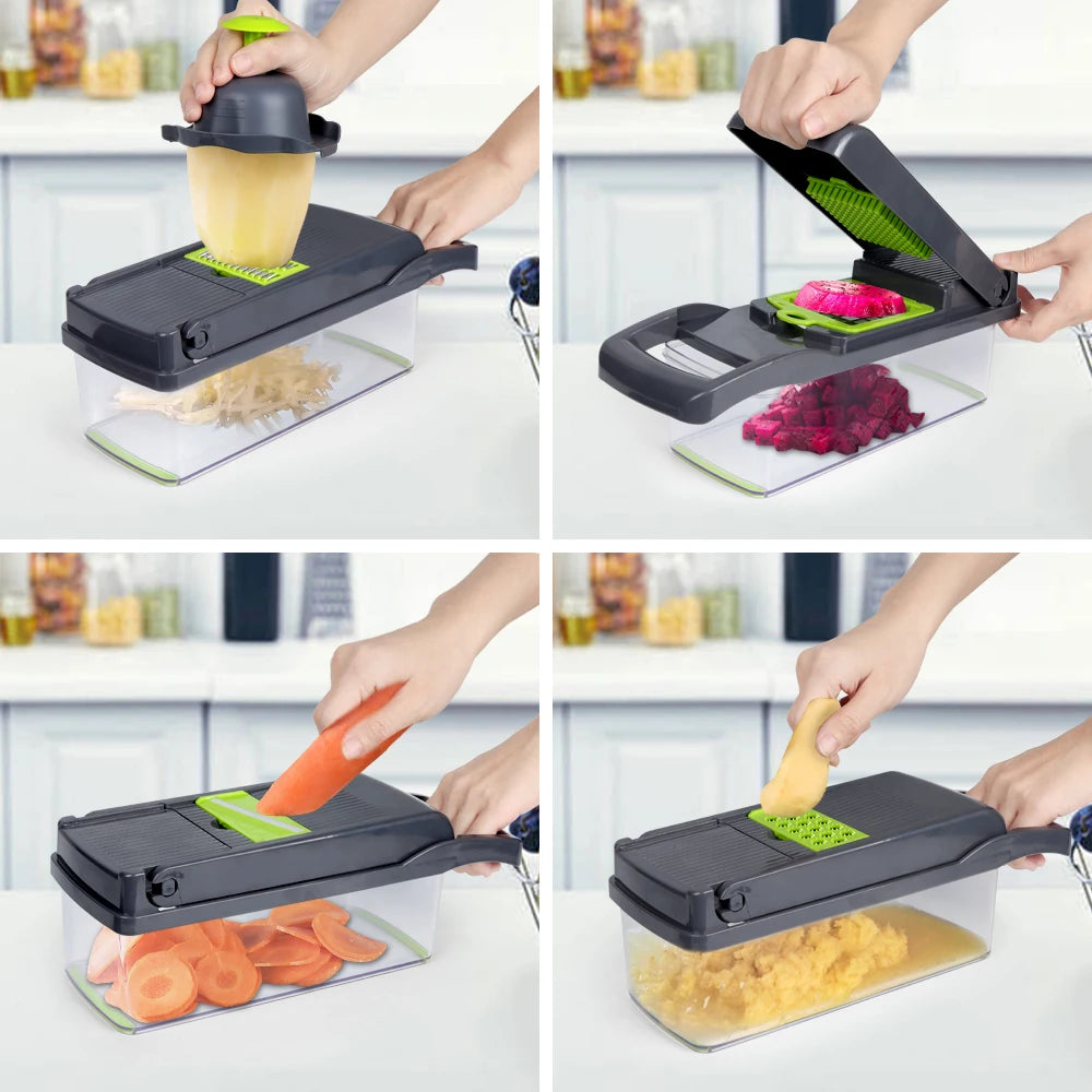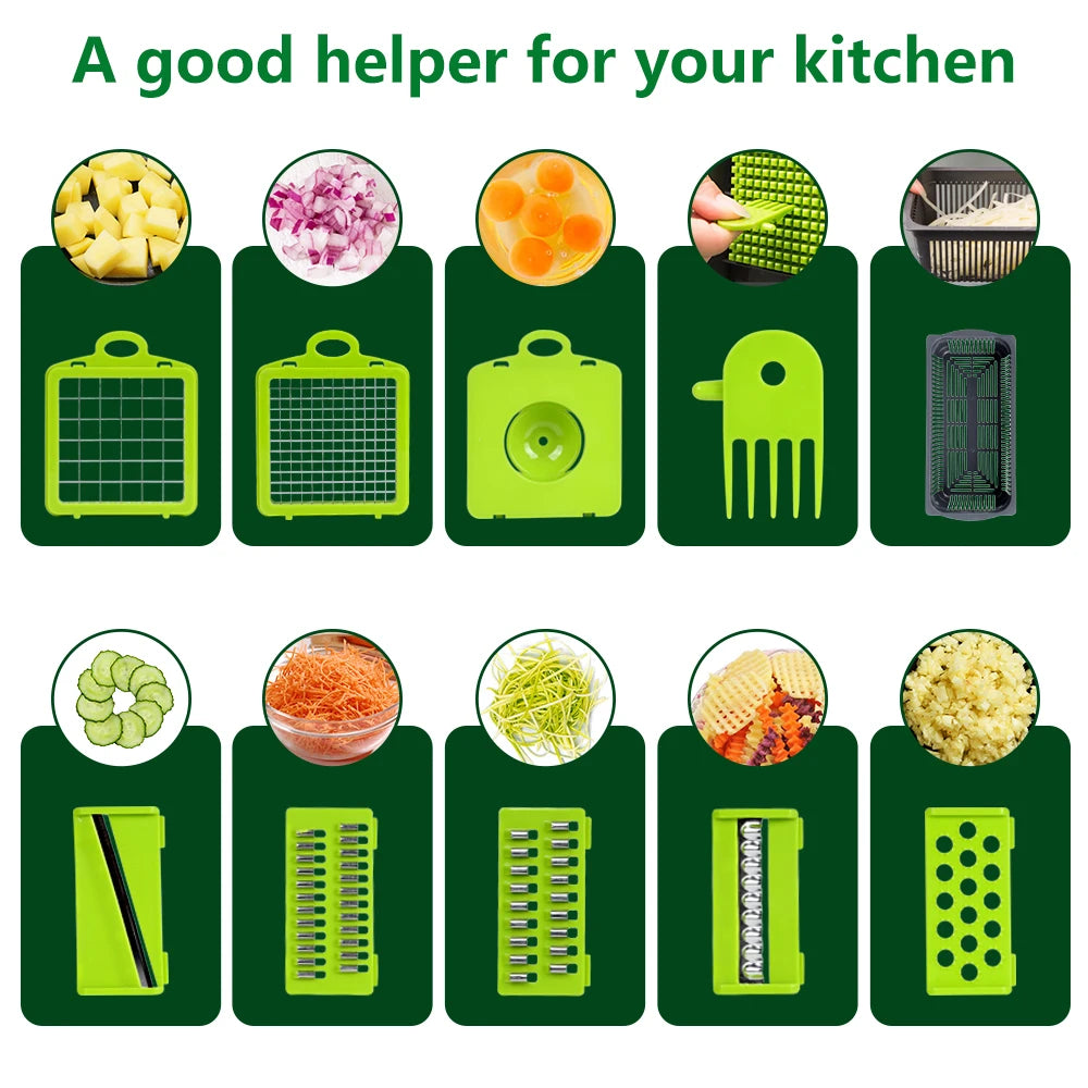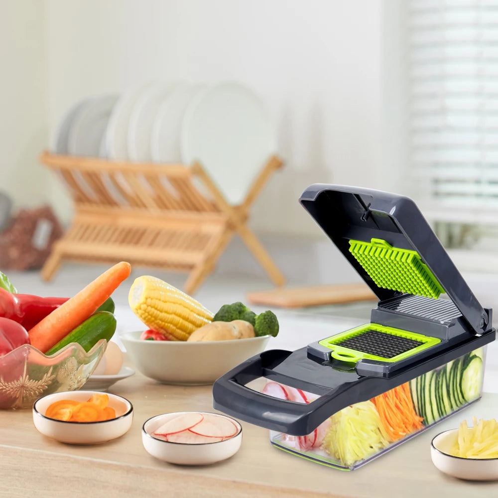 Make meal prep a breeze with our Kitchen Multi 12 In 1 cutter! Effortlessly dice, slice, and chop fruits and vegetables with precision. Say goodbye to messy and time-consuming food prep. Save time and energy with our versatile and durable slicer. Upgrade your cooking game today!