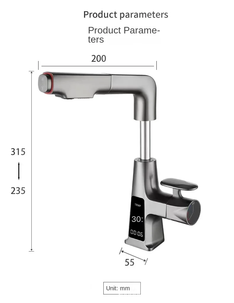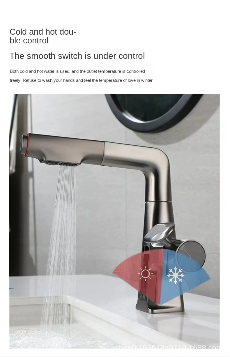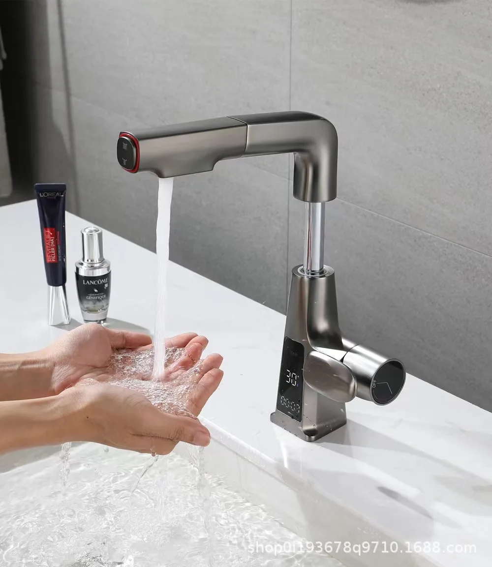 Bathroom Basin Faucet Brass Digital Display Watertall Tap Cold and Hot Water Lifting Pull Out Bathroom Sink Mixer kitchen faucet