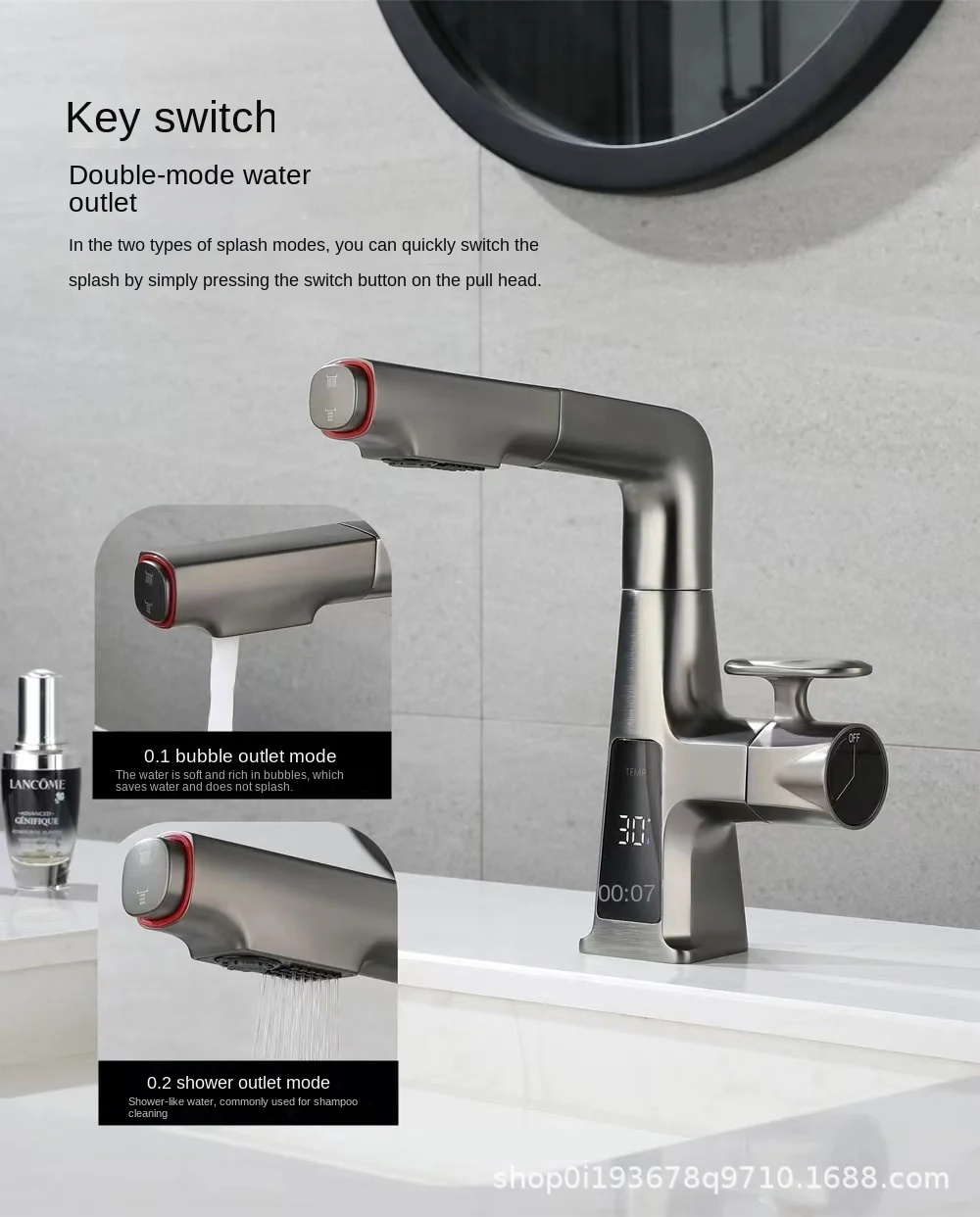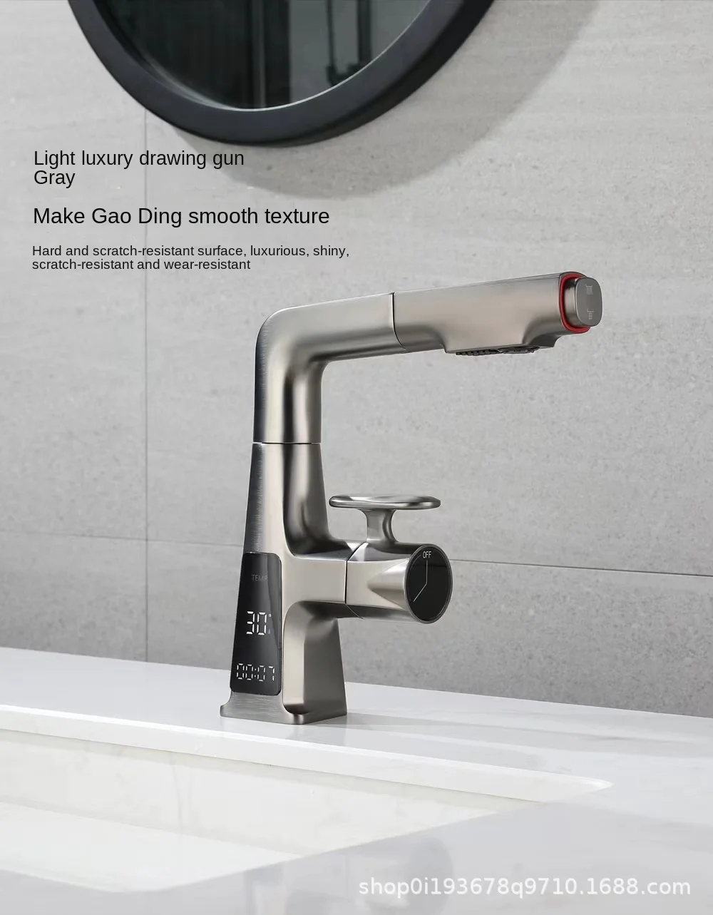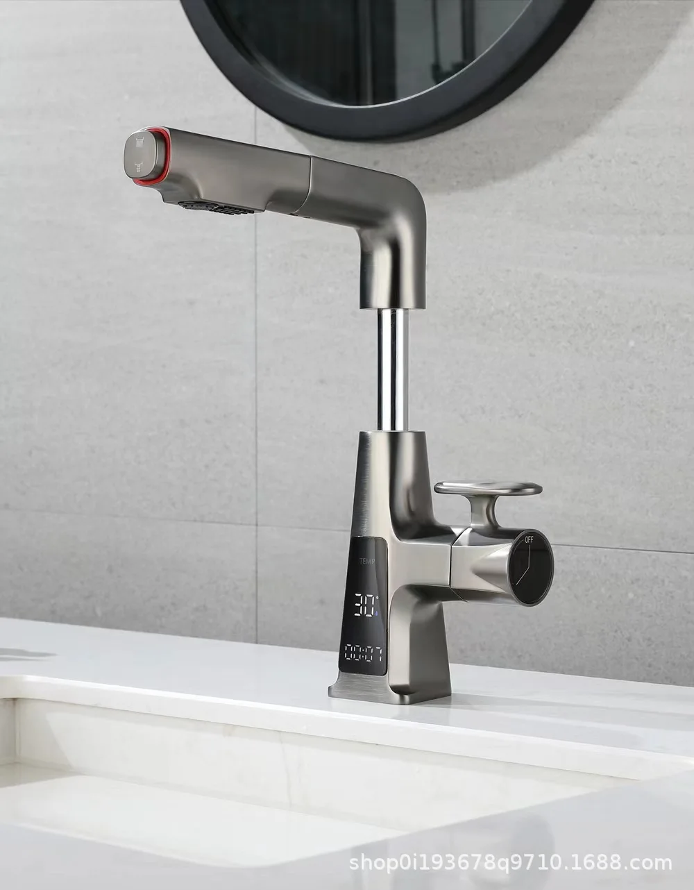 Bathroom Basin Faucet Brass Digital Display Watertall Tap Cold and Hot Water Lifting Pull Out Bathroom Sink Mixer kitchen faucet