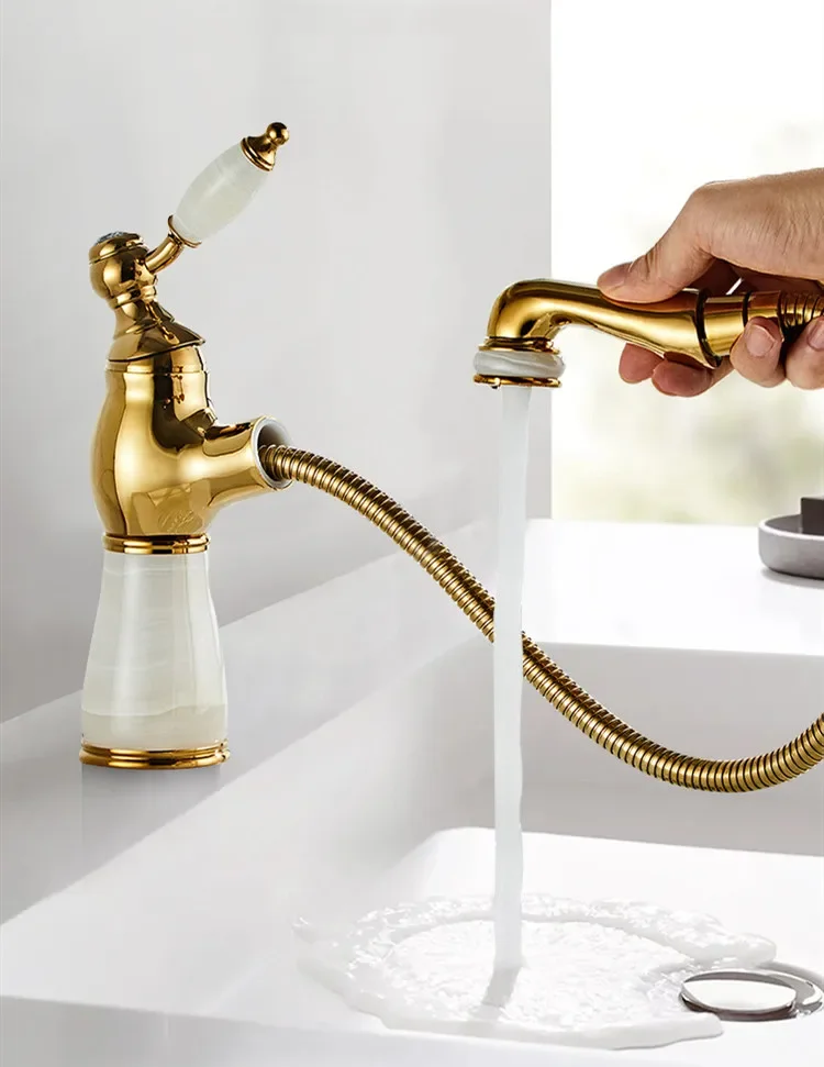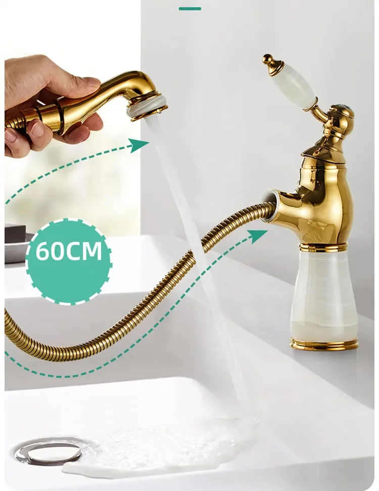 Bathroom Faucet Brass Antique Jade Bathroom Basin Faucet Cold And Hot Water Mixer Sink Tap Deck Mounted Pull Out Tap