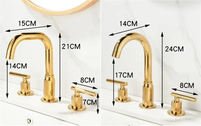 Bathroom Faucet Brass Widespread Gold Basin Brass Sink 3 Hole Double Handle Hot & Cold WashWater Tap