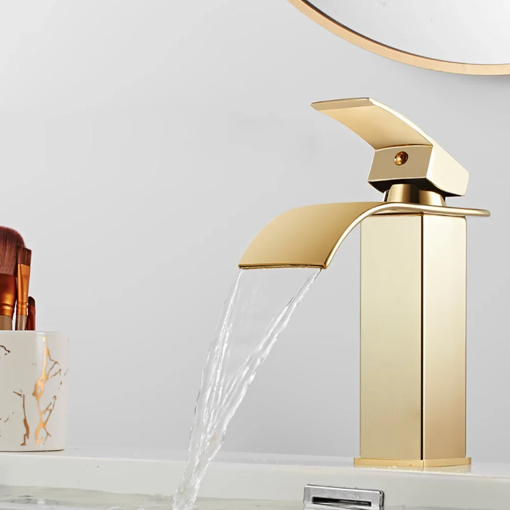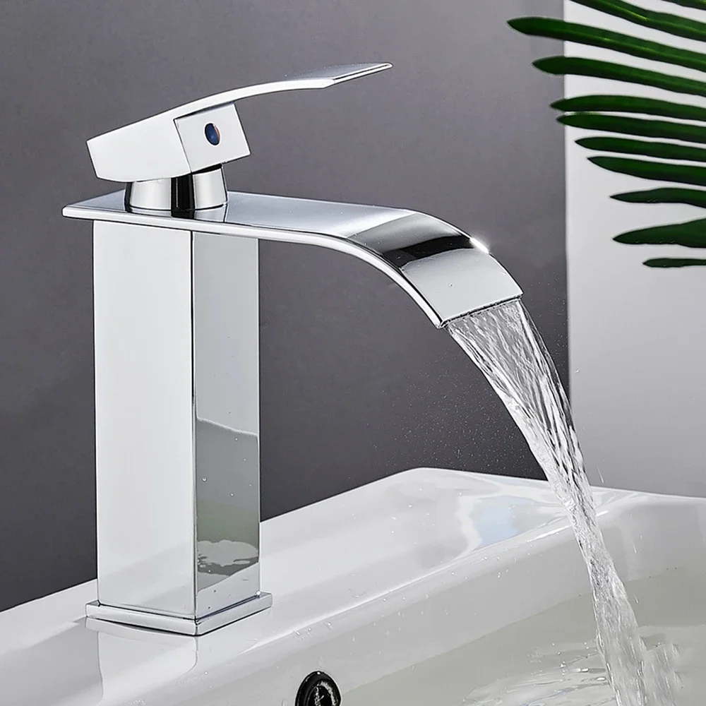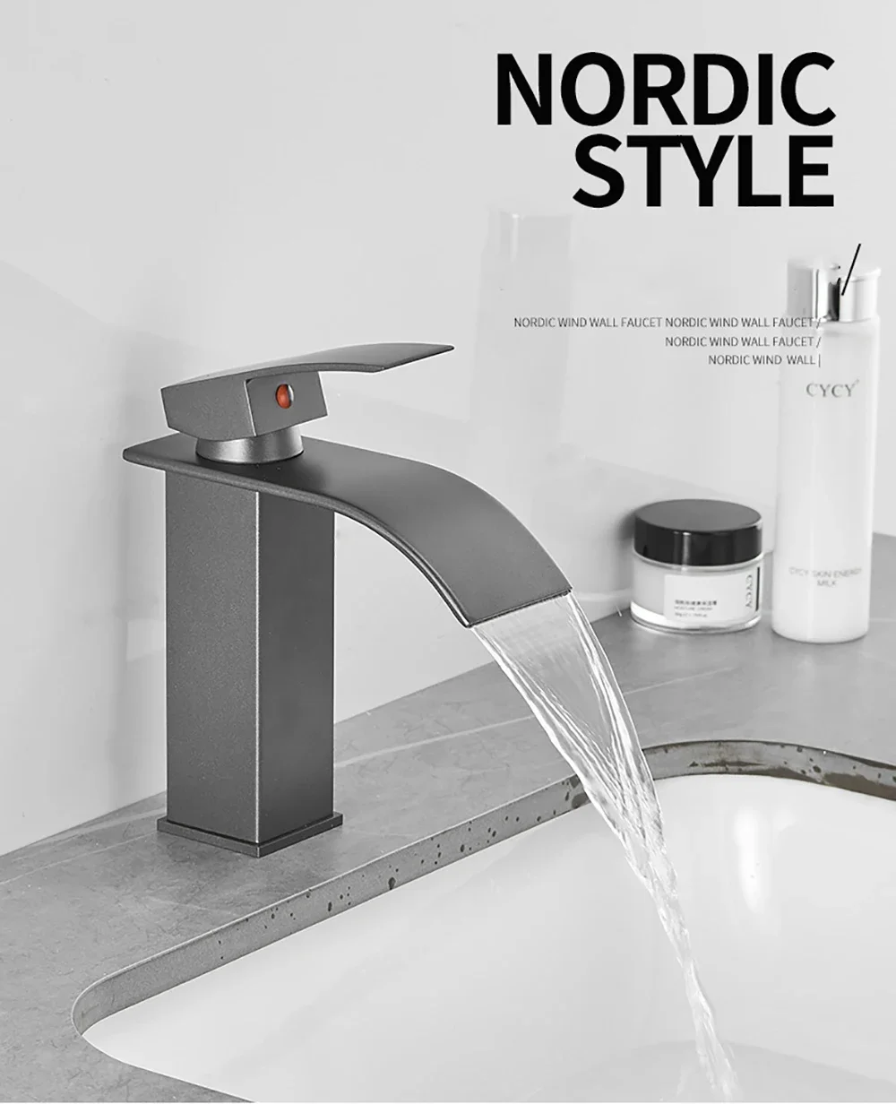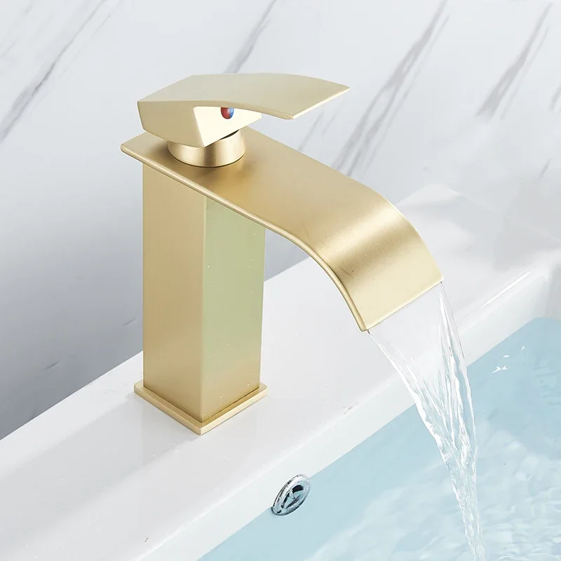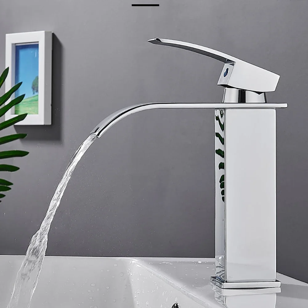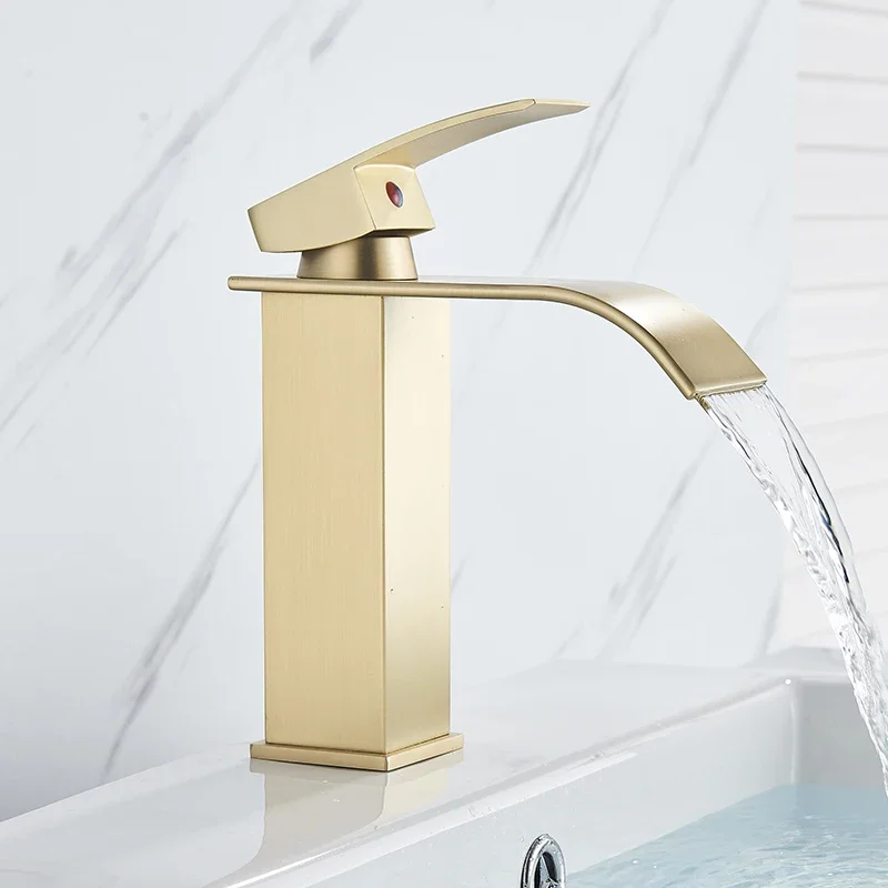 Brass Single Handle Single Hole Fashion Wash Basin Sink Faucet Hot and Cold Waterfall Bathroom Faucet Deck-mounted Faucet
