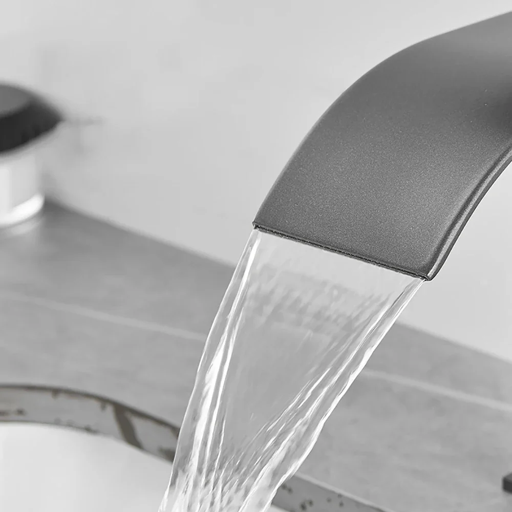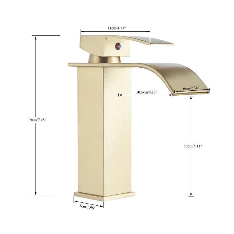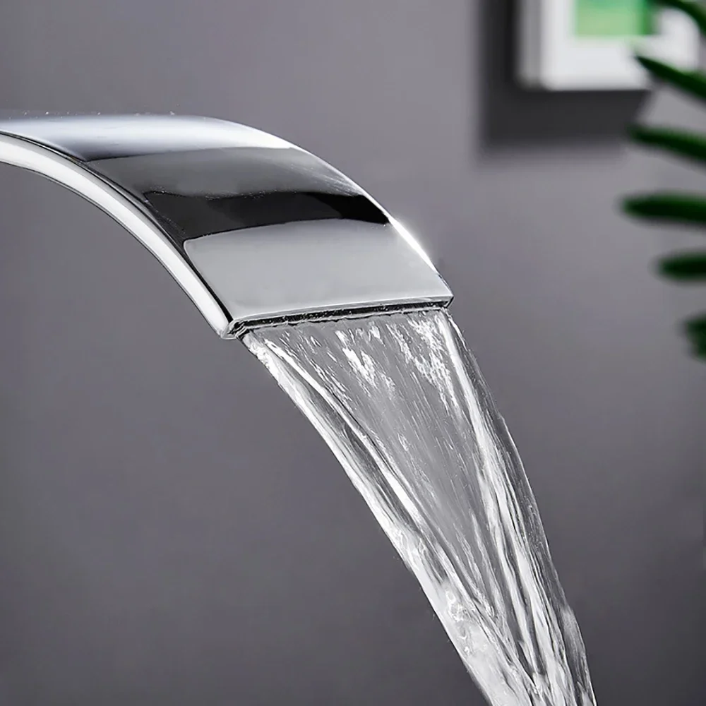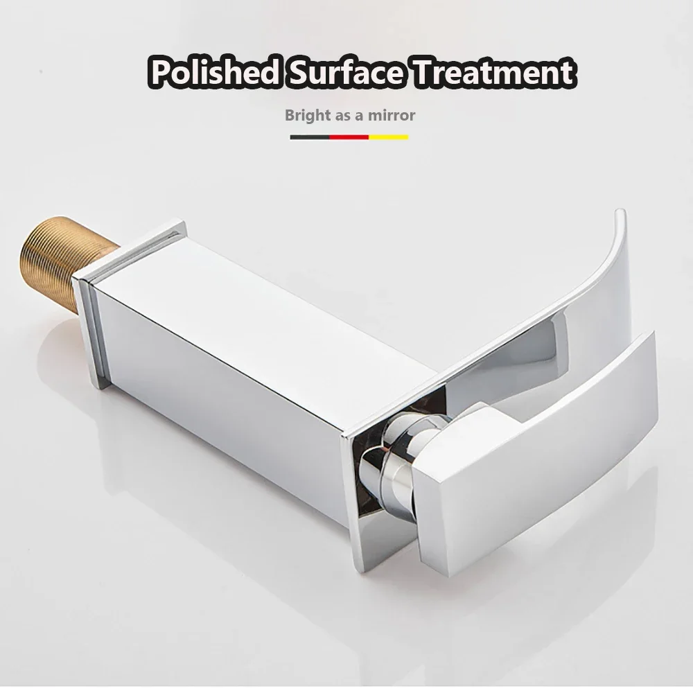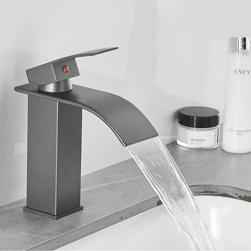 Brass Single Handle Single Hole Fashion Wash Basin Sink Faucet Hot and Cold Waterfall Bathroom Faucet Deck-mounted Faucet