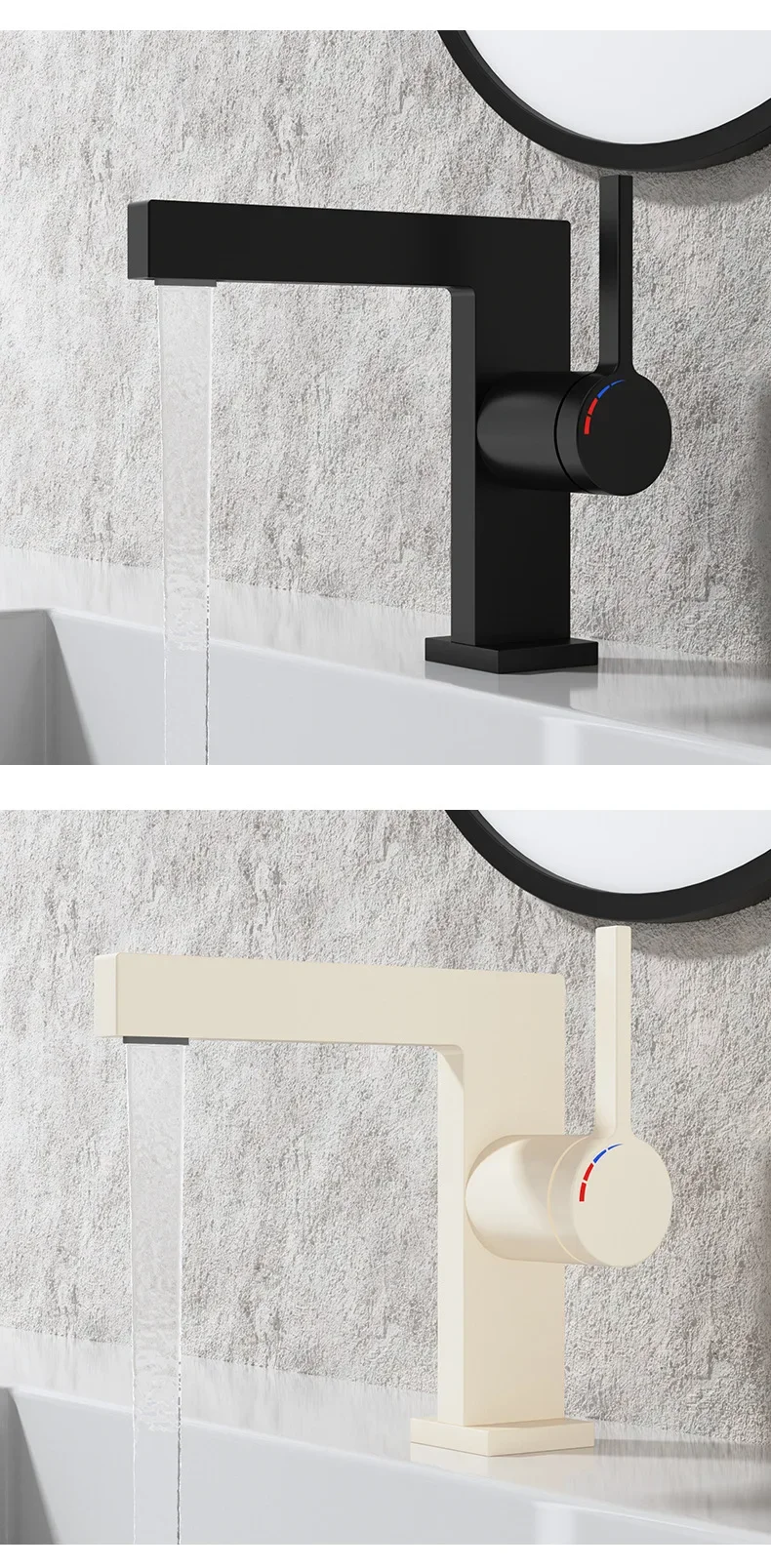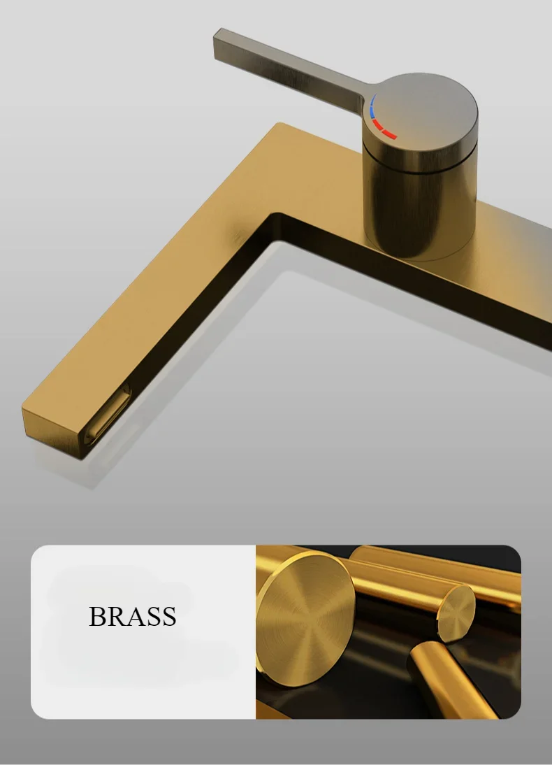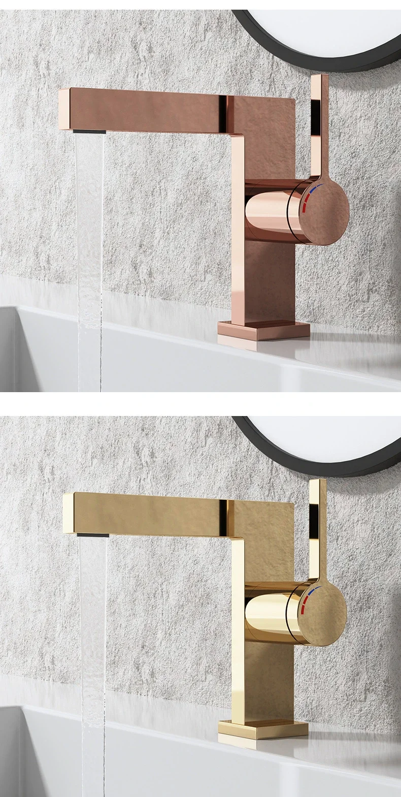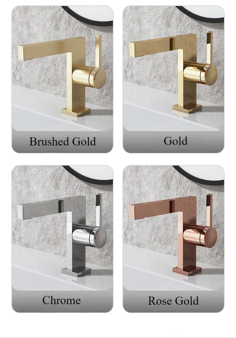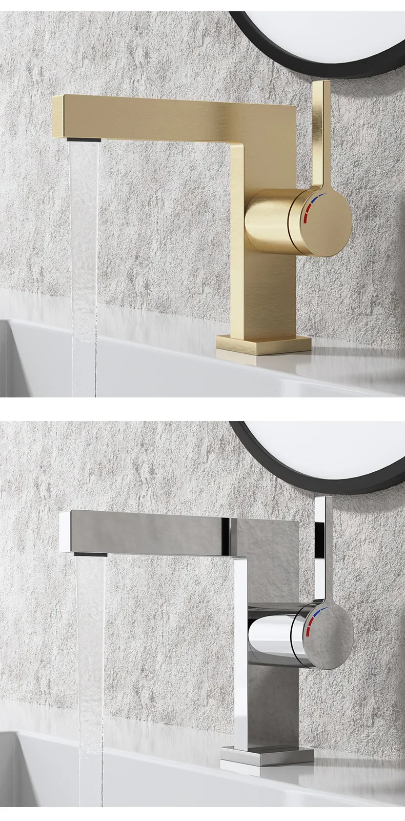 Brushed Gold Brass Square style Bathroom Basin Faucet Single Handle Single Hole Hot And Cold Water Mixer Tap