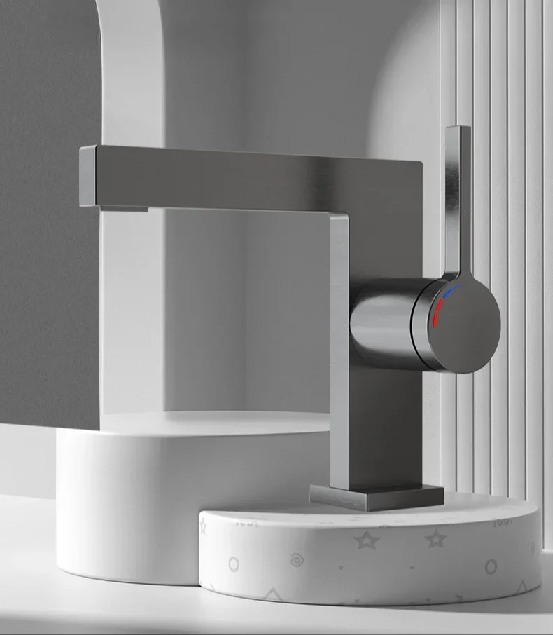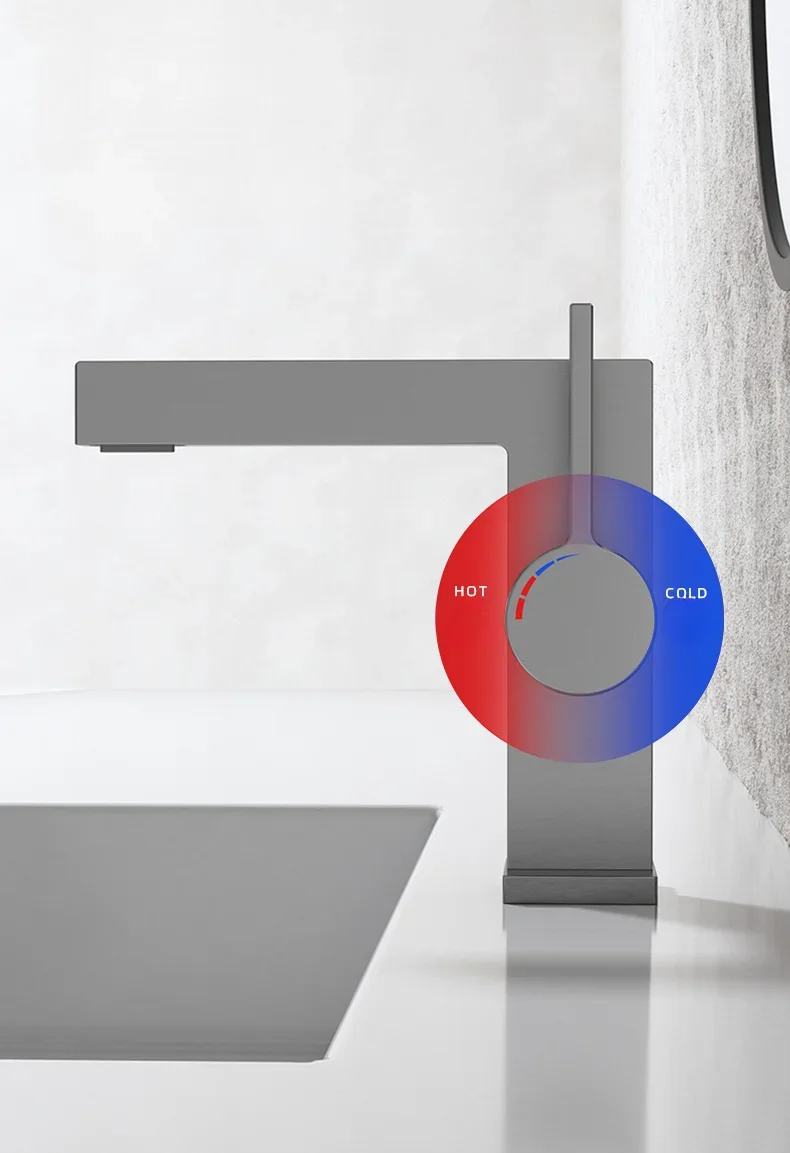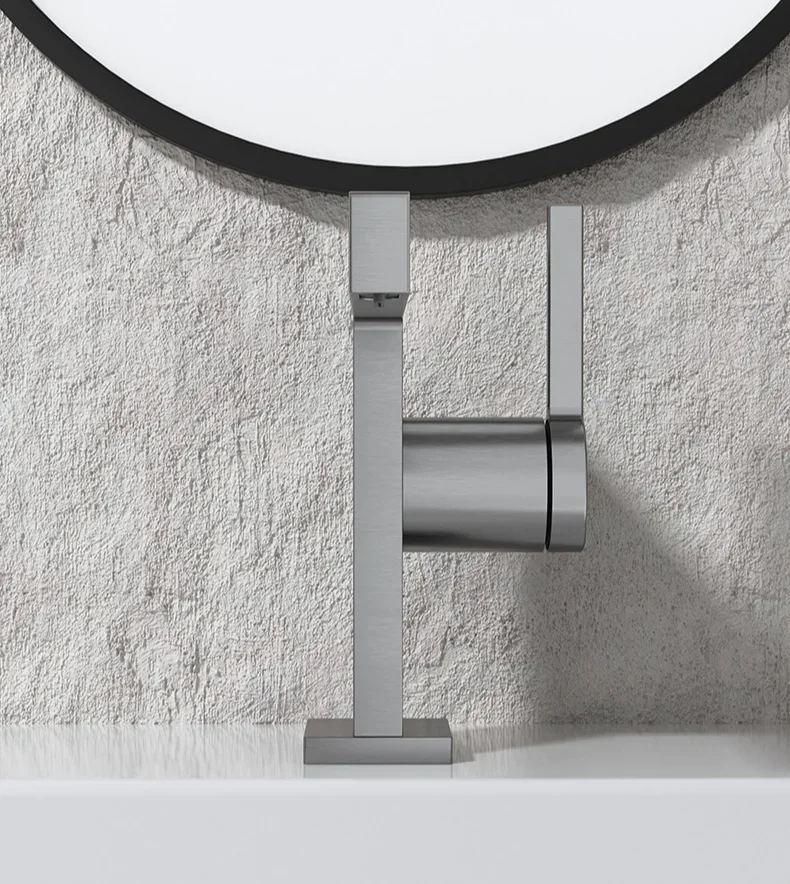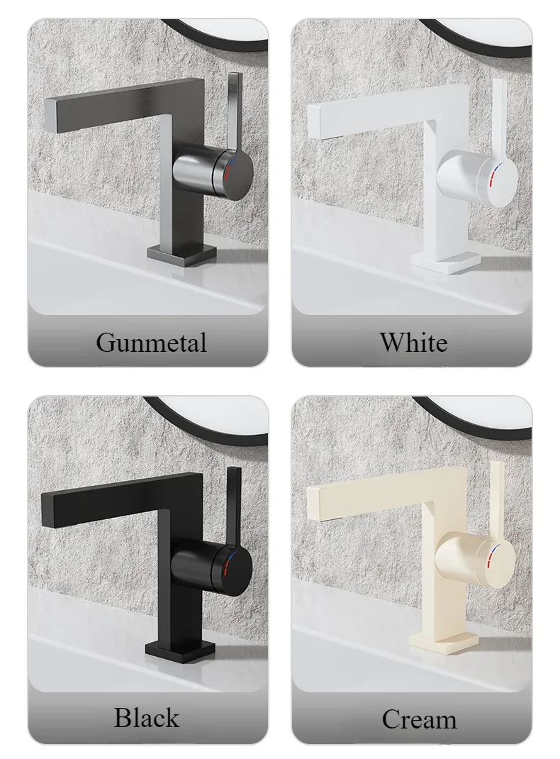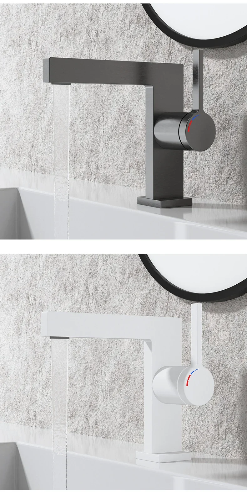 Brushed Gold Brass Square style Bathroom Basin Faucet Single Handle Single Hole Hot And Cold Water Mixer Tap