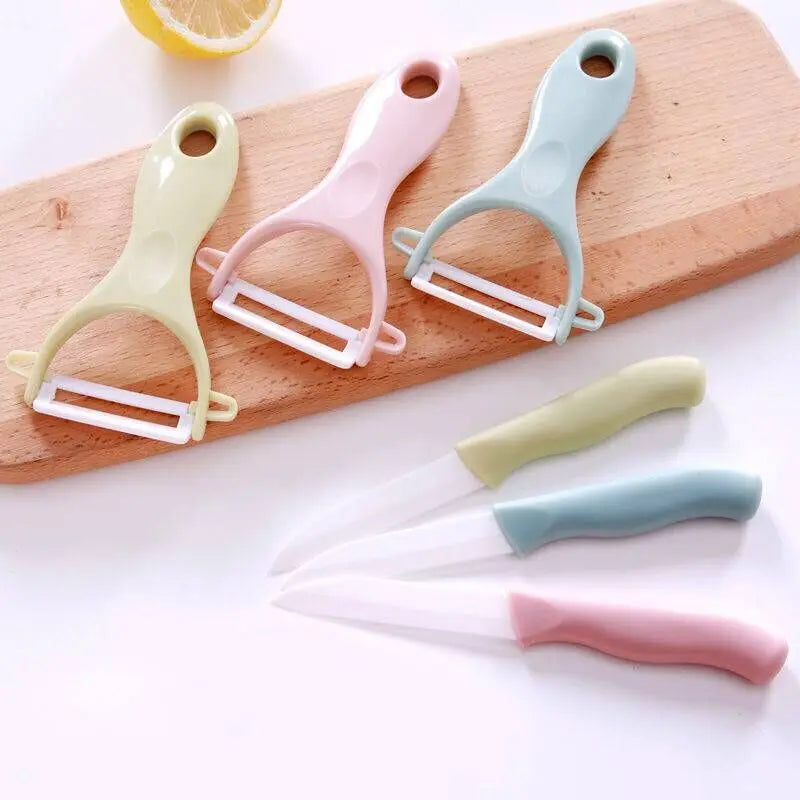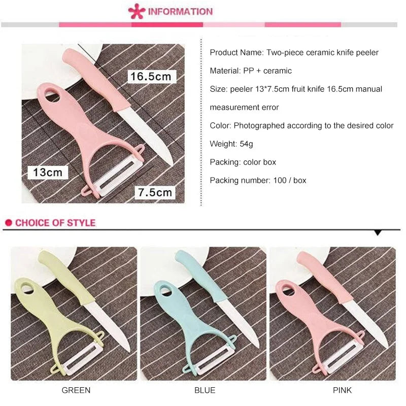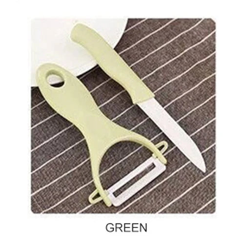 Decrease quantity for Ceramic Knife 2Pcs/Set Kitchen Knives Peeler Set Plastic Handle Home Fruit Peeling Slices Scrape Tools