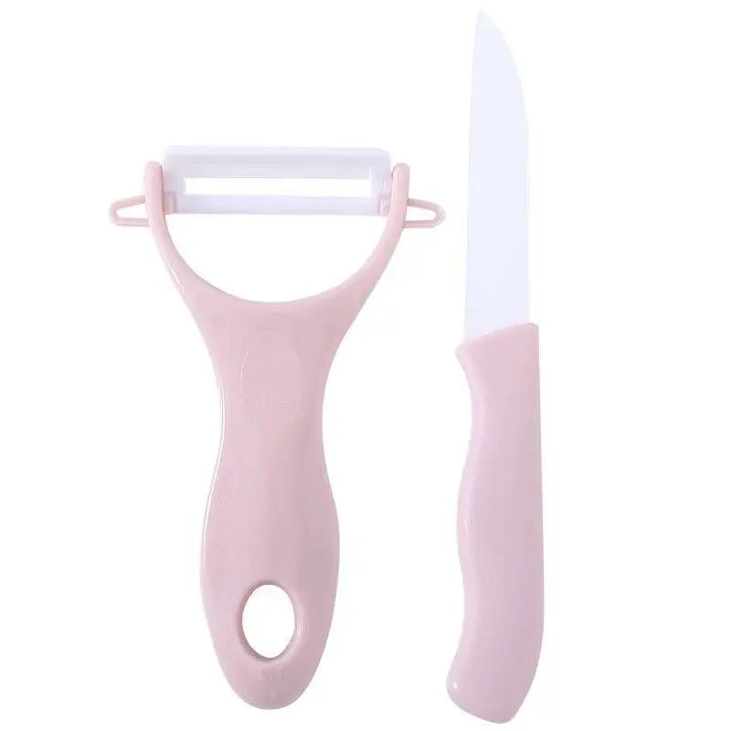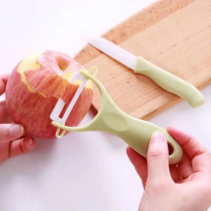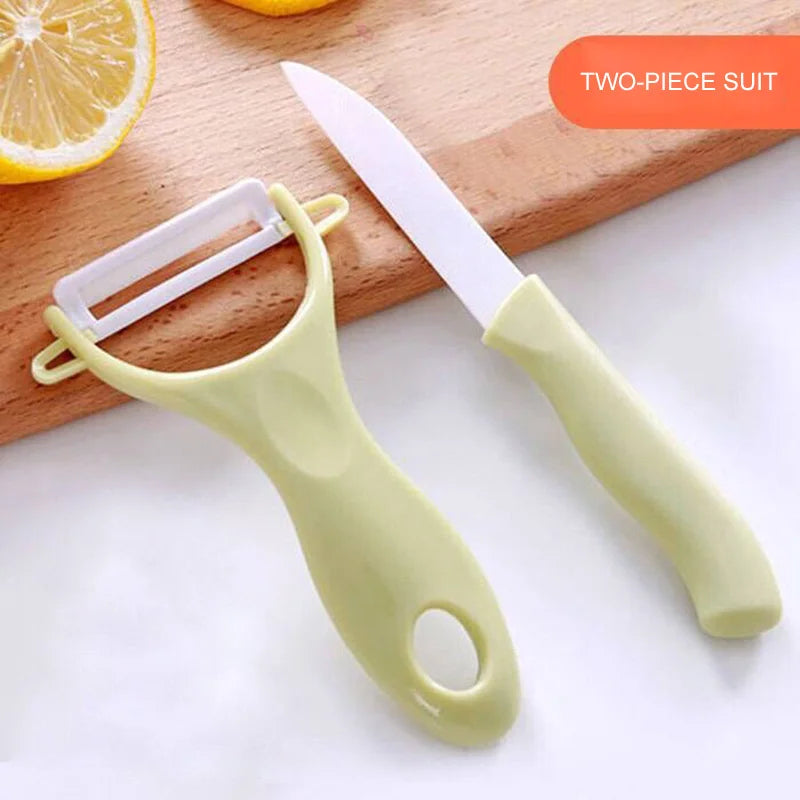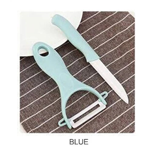 Ceramic Knife 2Pcs/Set Kitchen Knives Peeler Set Plastic Handle Home Fruit Peeling Slices Scrape Tools