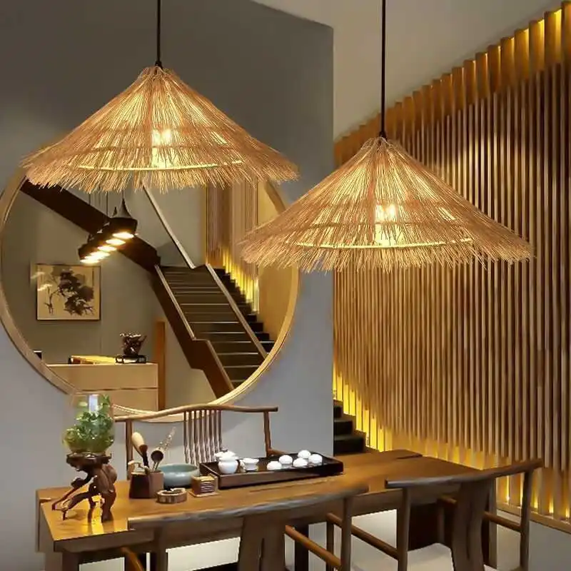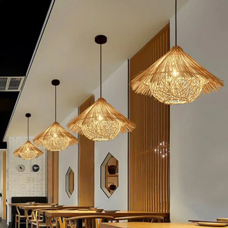 Natural Weave Modern Rattan Pendant Light Lantern Ceiling Light For Parlor restaurant bar cafe Home Decor Lighting