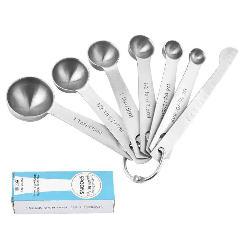 Color box packing measure baking tools stainless steel 4 or 7pieces measuring spoon set With scale for kitchen accessories