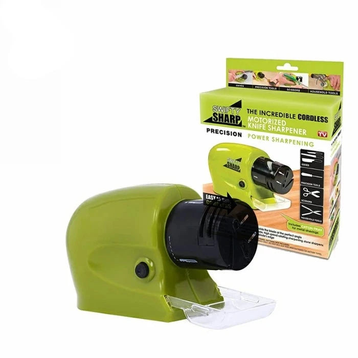 Get perfectly sharpened knives with the Electric Swifty sharp kitchen Motorized Knife Blade Sharpener. This professional sharpener effortlessly sharpens your blades, saving you time and effort in the kitchen. No more struggling with dull knives. Experience the convenience and efficiency of this powerful sharpener today!