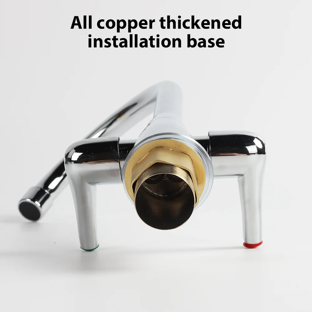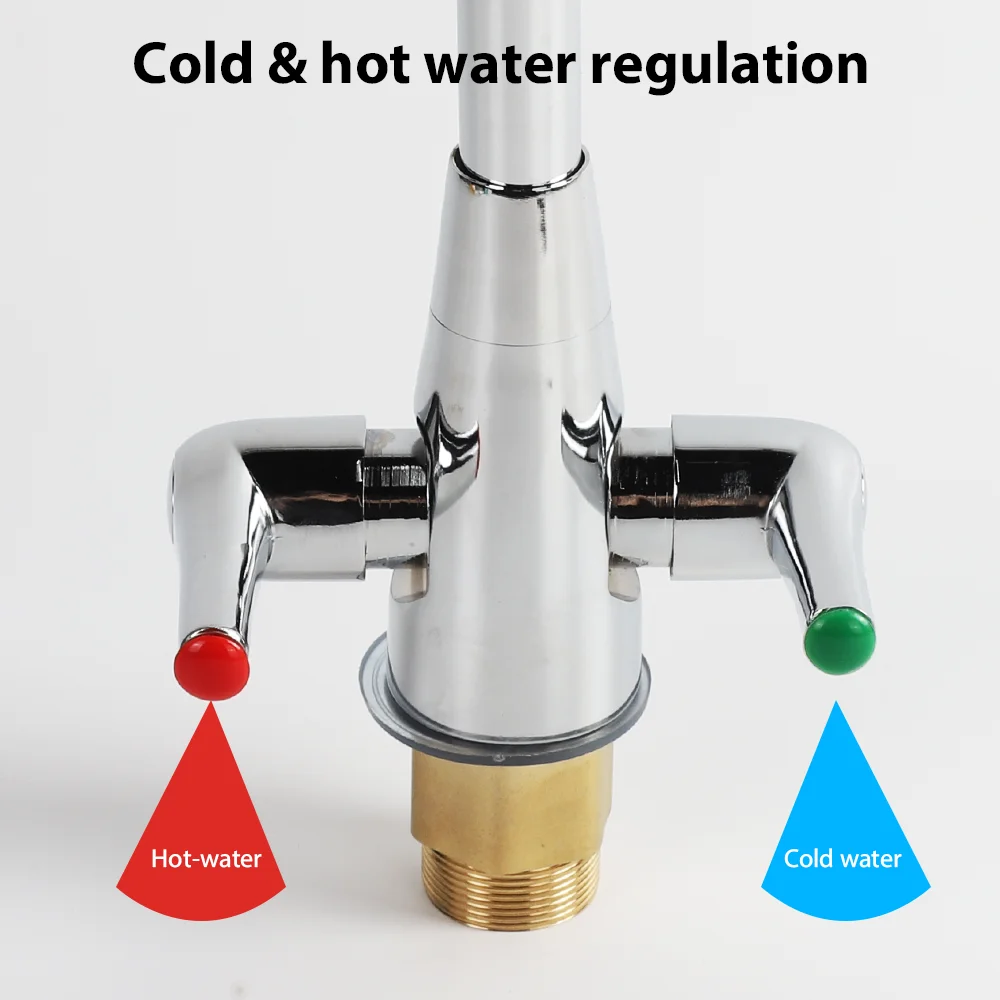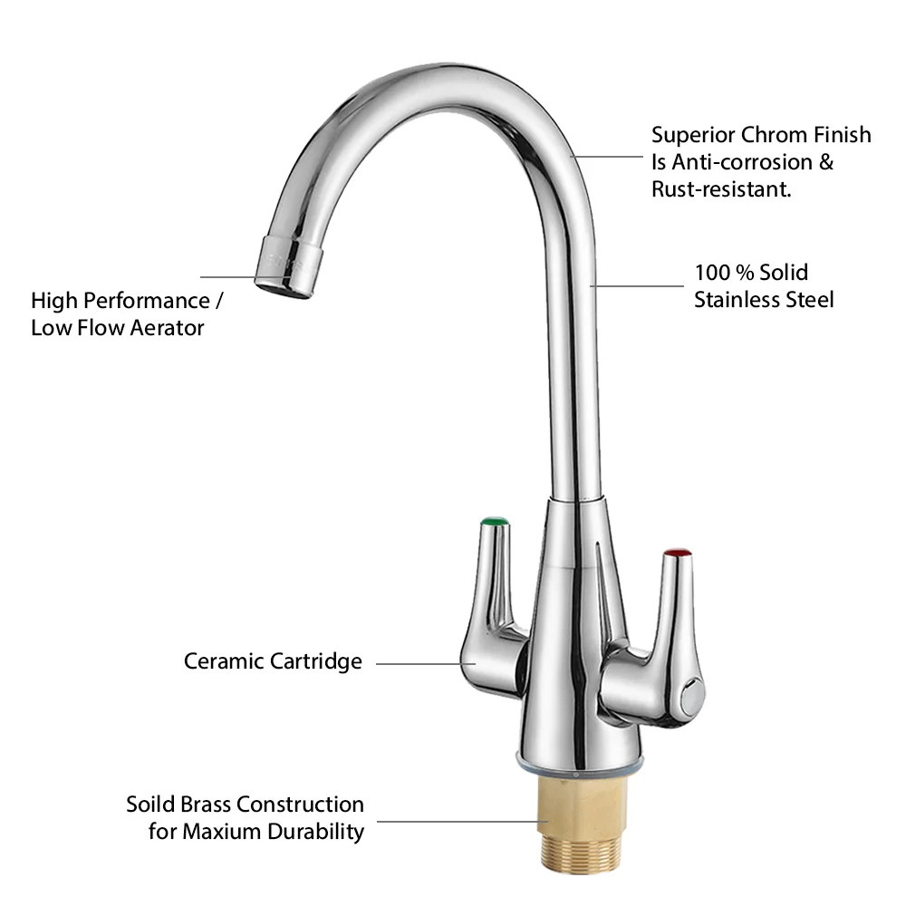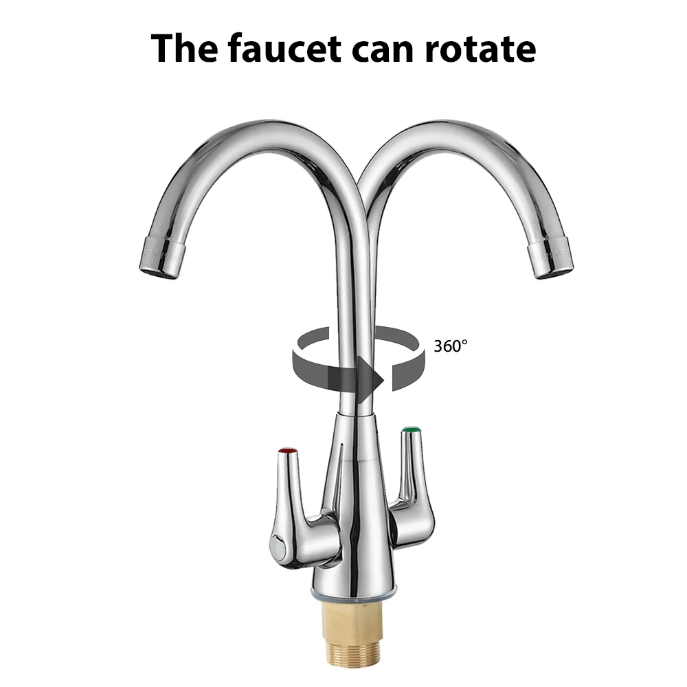 Double Lever Sink Faucet Kitchen Hot Cold Water Sink Mixer Tap 360° Swivel Spout Elbow Faucet Filter w/60cm water inlet hose