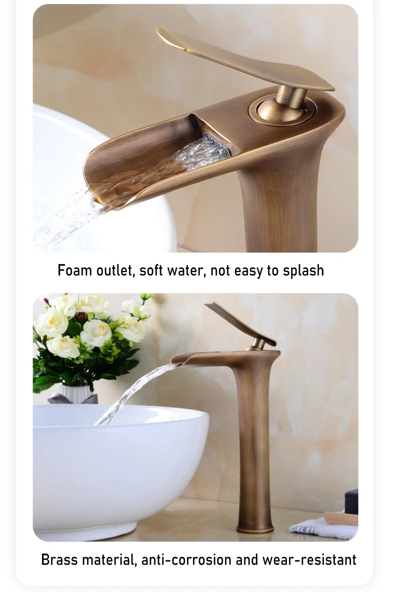 European-style bronze retro table basin faucet balcony bathroom cabinet waterfall basin cold and hot water faucet splash proof