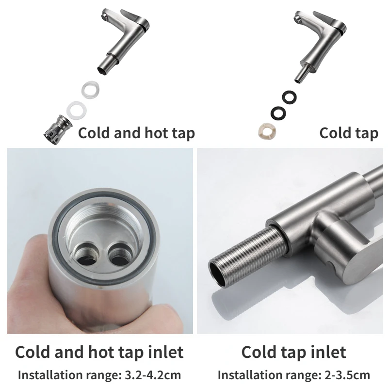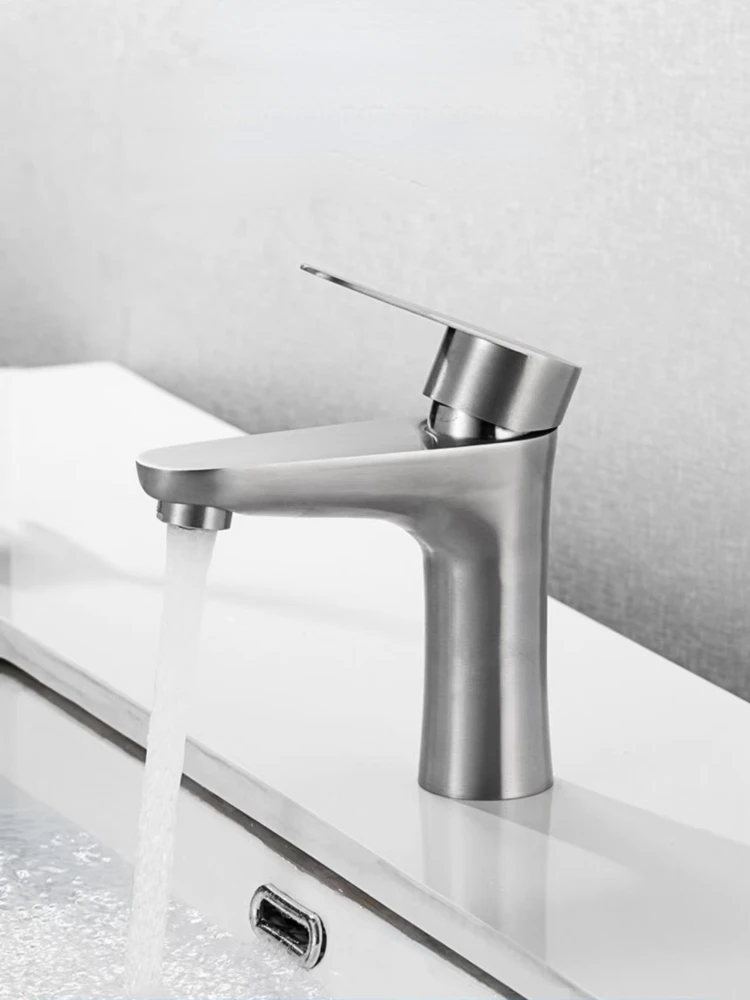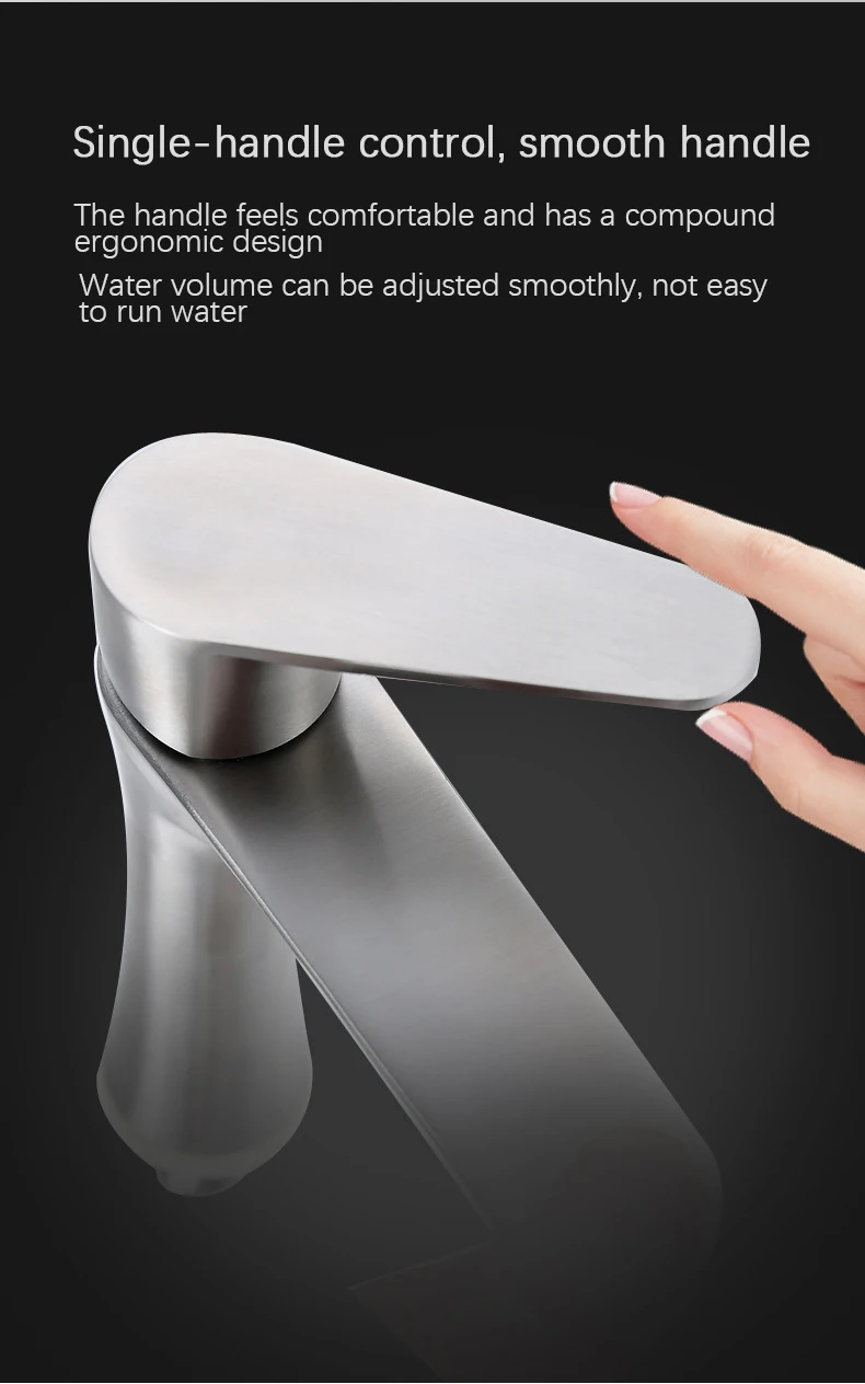 Ewin 304 Stainless Steel Bathroom Basin Faucets Deck Mounted Hot Cold Tap Single Hole Drawing Lavatory Sink Faucet