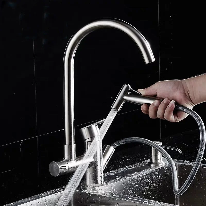 Good quality brush nickel deck mounted single hole stainless steel 304 brush nickel kitchen faucet pull out mixer tap