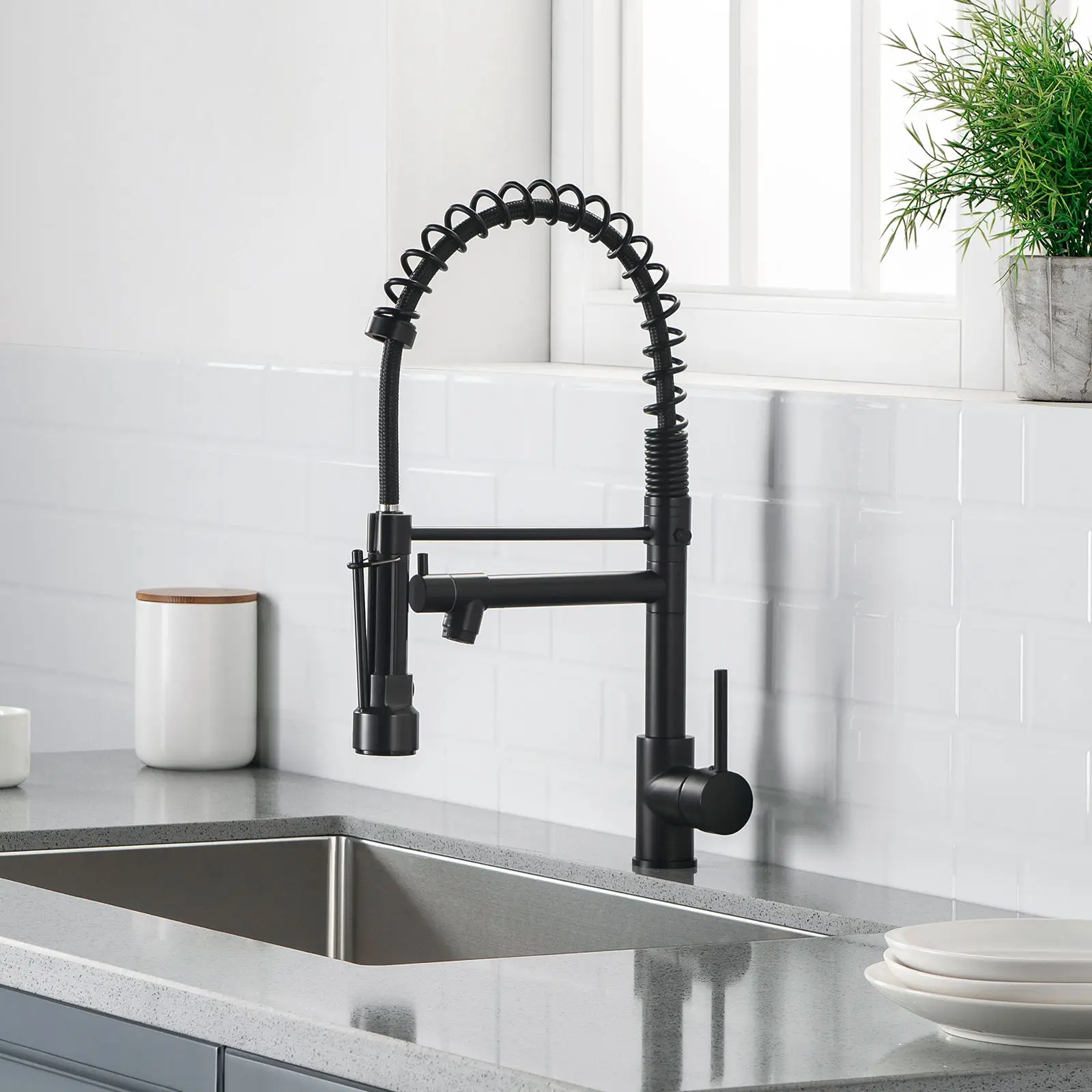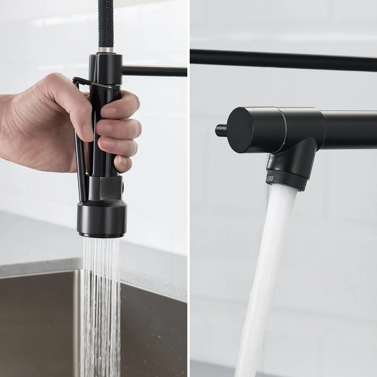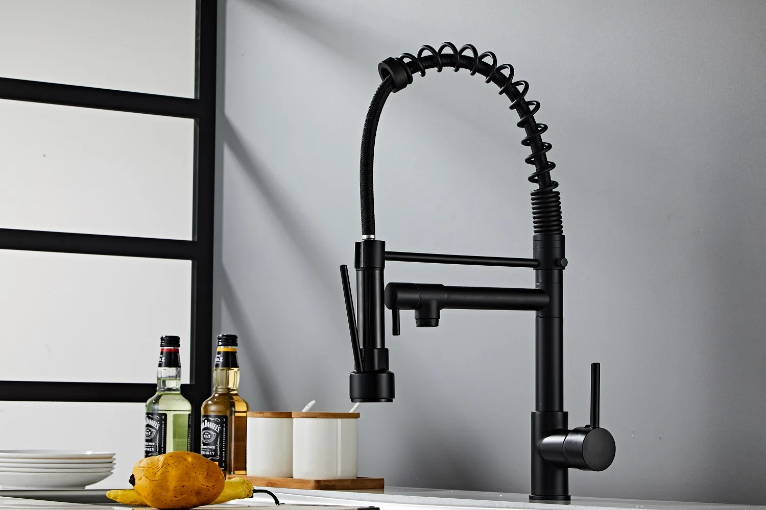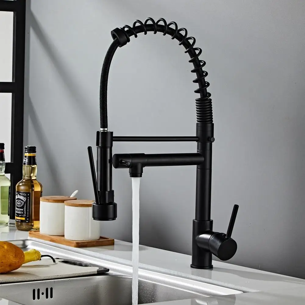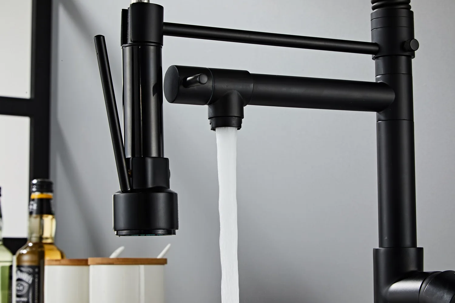 High End Black Brass Kitchen Faucet Magnetic Suction Design Dual Function Single Handle Cold And Hot Dual Control Sink Faucet