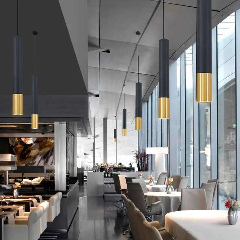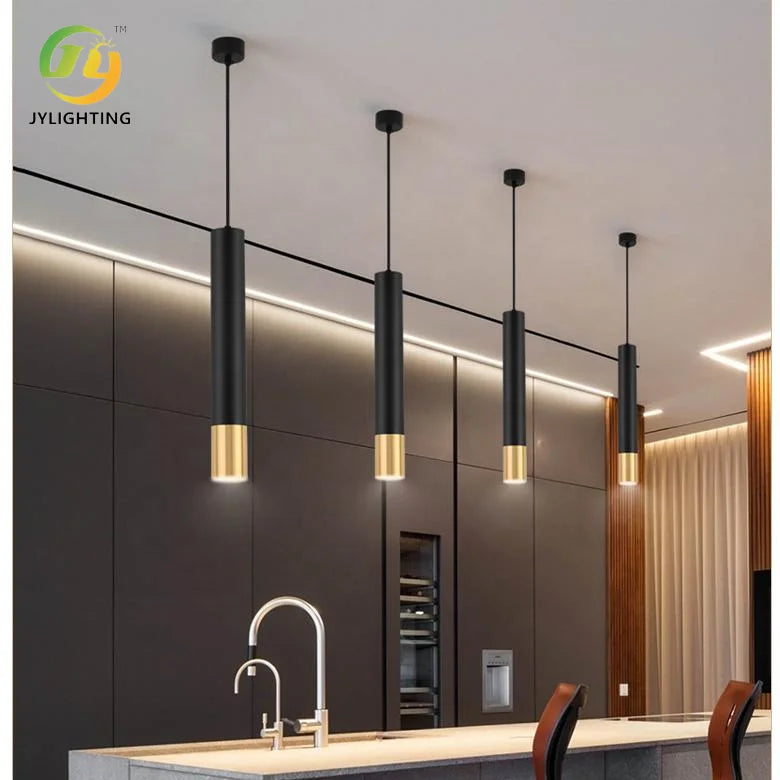 Modern Black Brass Gold Pendant Light Aluminum Tube LED Bulb for Home Kitchen Bedroom Hotel Room Lighting