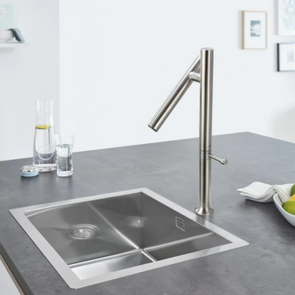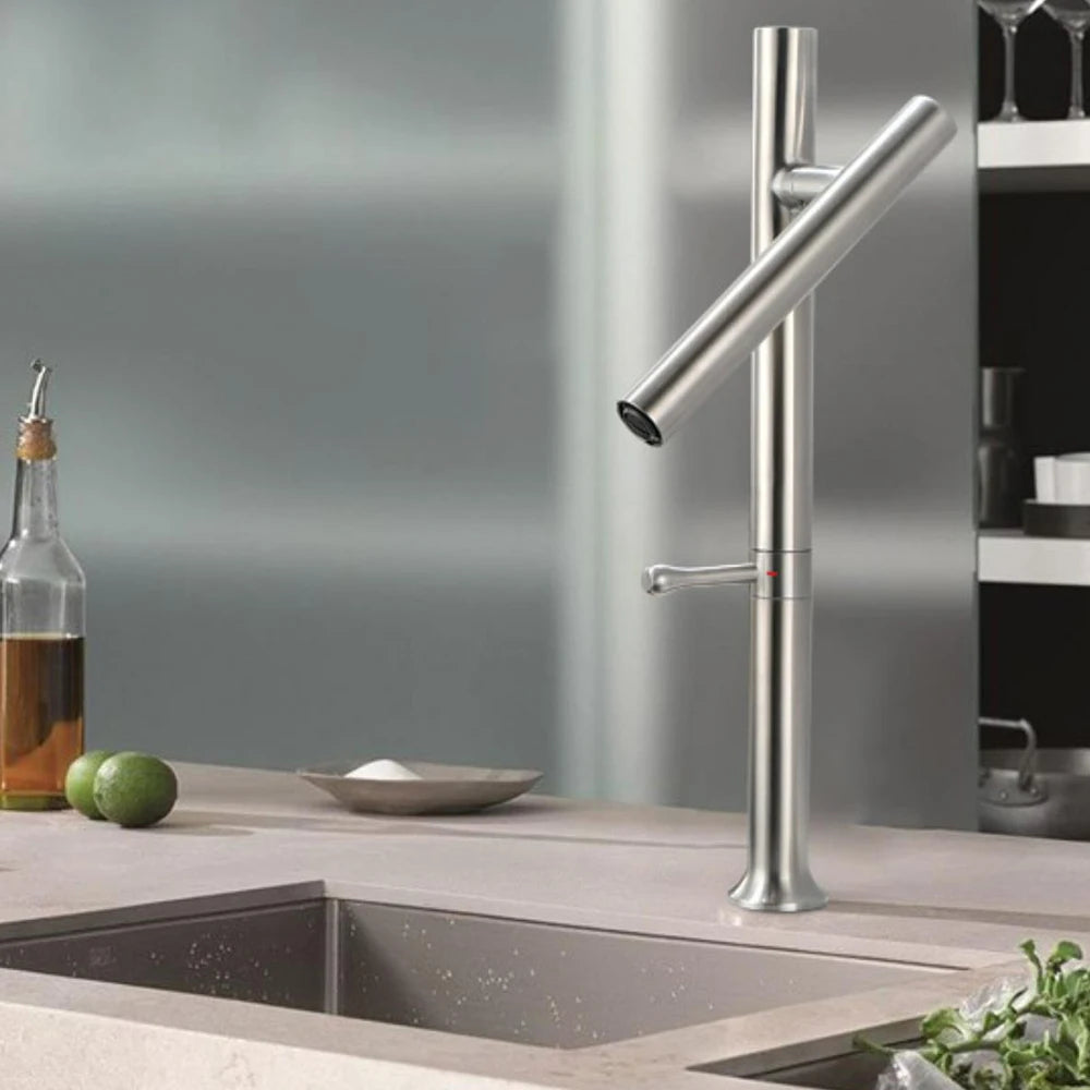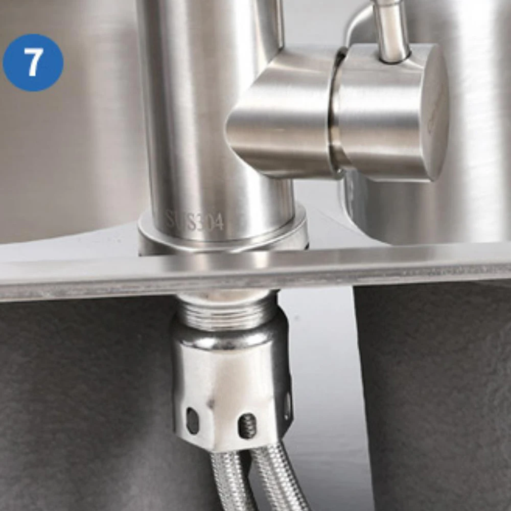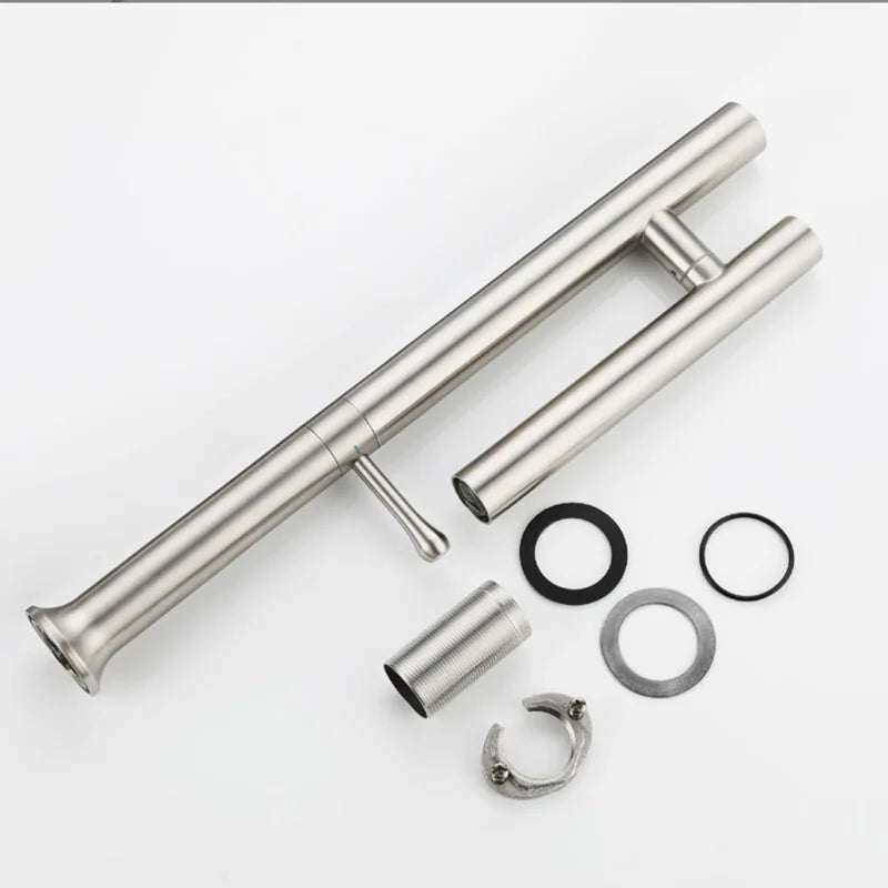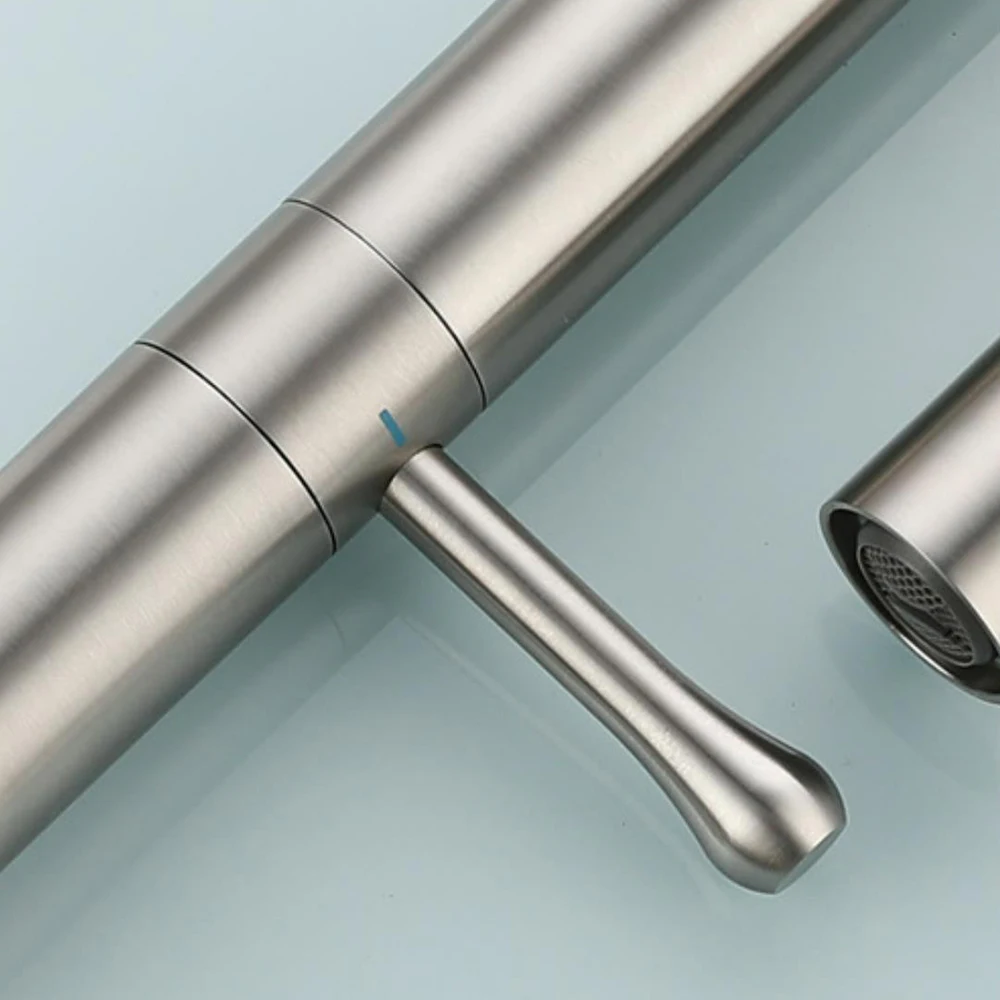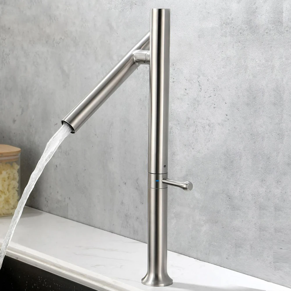 Kitchen Basin Faucet 304 Stainless Steel Mixer Water Cold &Hot Single Handle 360 Rotation Ceramic Valve Core