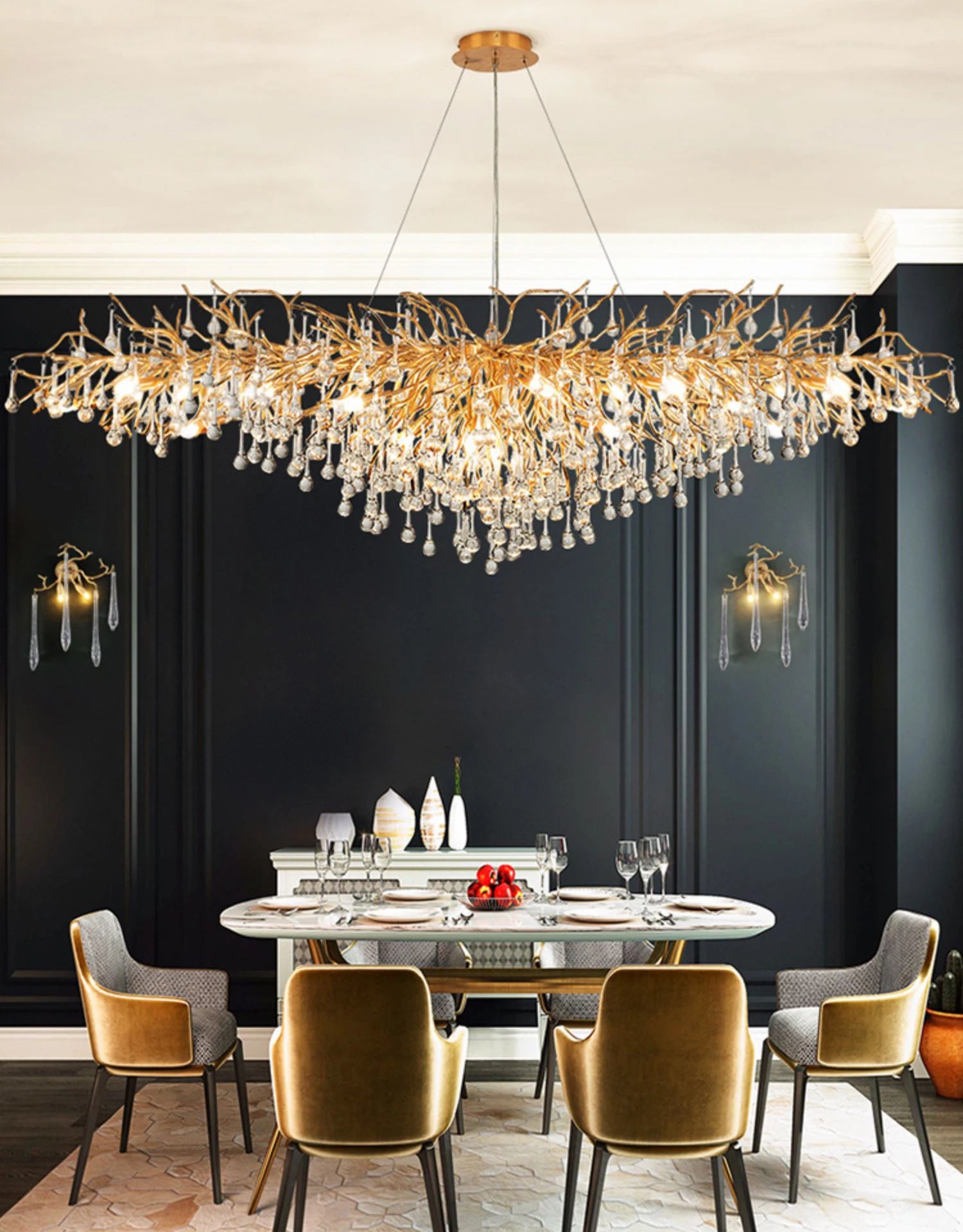Illuminate your kitchen with our stunning Kitchen Chandelier. Made with brass and featuring a unique oval shape, this chandelier will add a touch of elegance to any room. Measuring 180cm in length. Its crystal accents will provide a warm and inviting glow.
