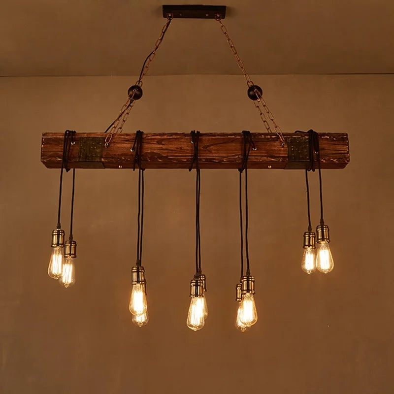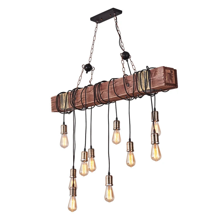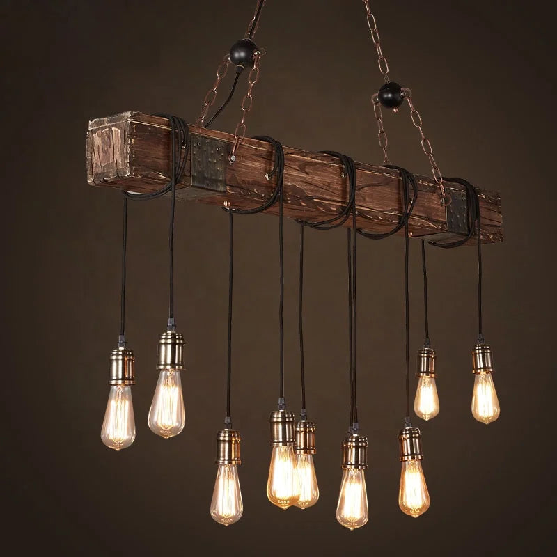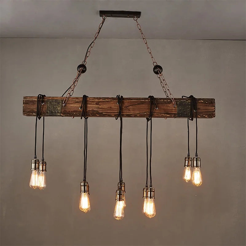 Kitchen dining rectangle wood pendant light restaurant vintage hanging lamp loft retro industrial iron chains wooden chandelier
