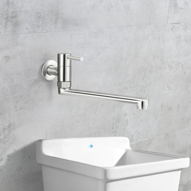 Kitchen Faucet 180 Degree Rotation Sink Mop Pool Tap Stainless Steel Lengthened Wall Mounted Single Cold Water Faucets