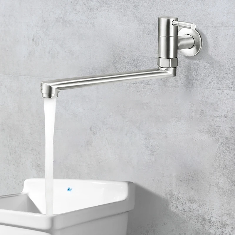 Kitchen Faucet 180 Degree Rotation Sink Mop Pool Tap Stainless Steel Lengthened Wall Mounted Single Cold Water Faucets