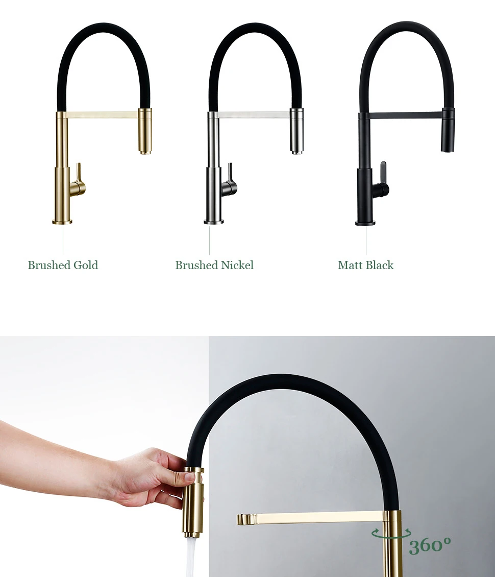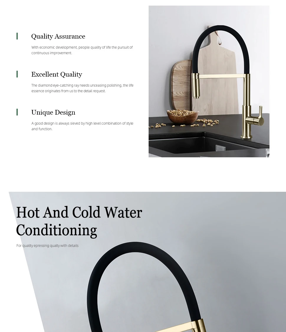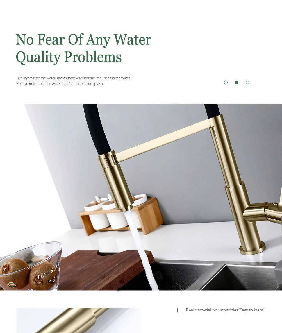 Kitchen Faucet Brushed Gold Sink Faucet Put Out Mixer 360 Degree Hot And Cold Water Tap Solid Brass Tap