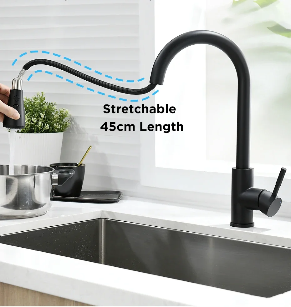 Decrease quantity for Kitchen Faucet Brushed Nickel Color Surface Hot and Cold Water Sink Pull-out Single Hole