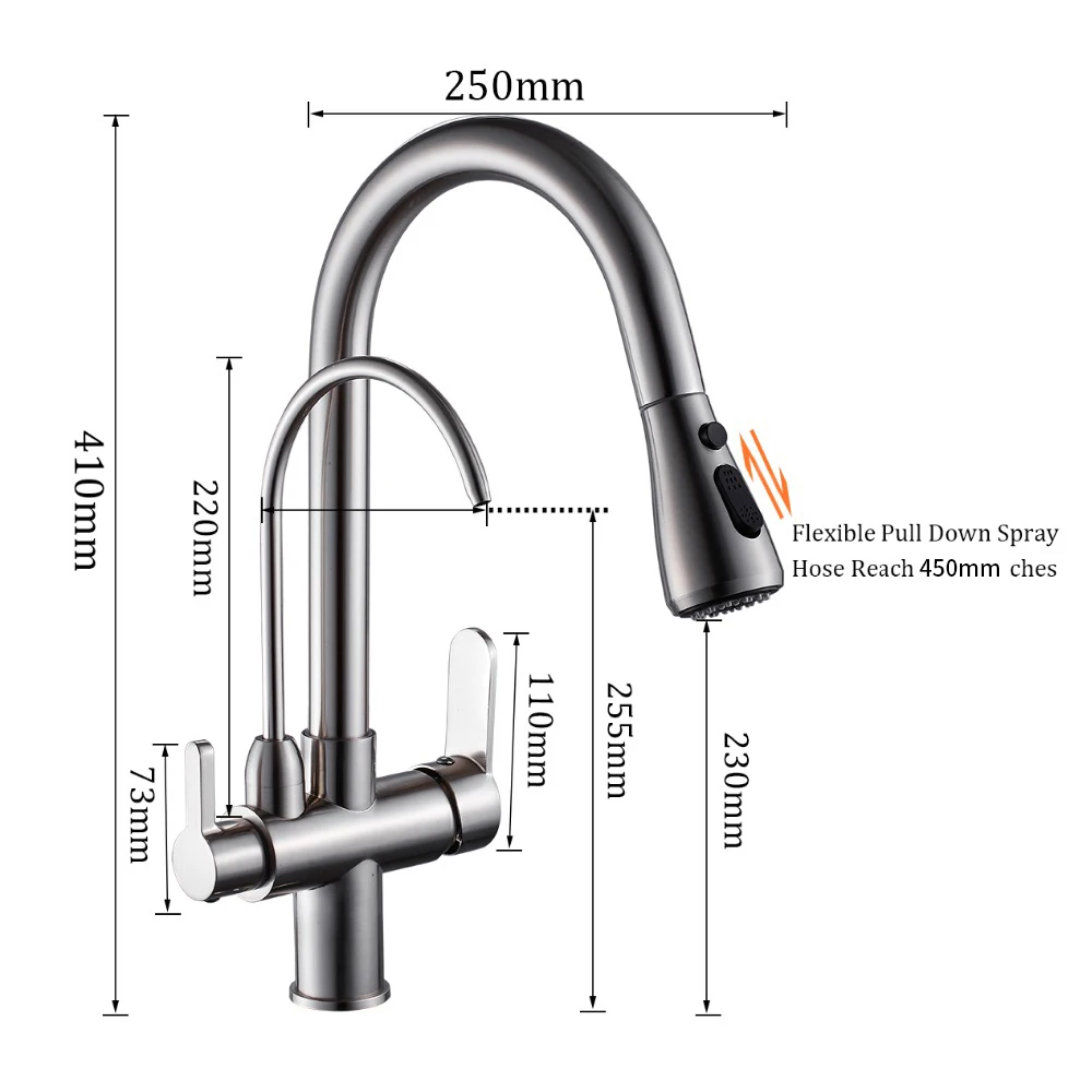 Kitchen Faucet Sink Pure Straight Drinking Full Copper Pull-out Hot and Cold Water Black