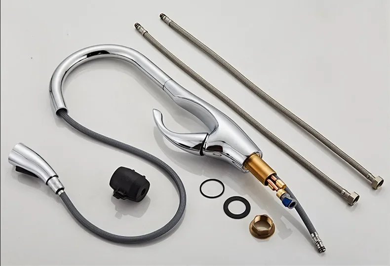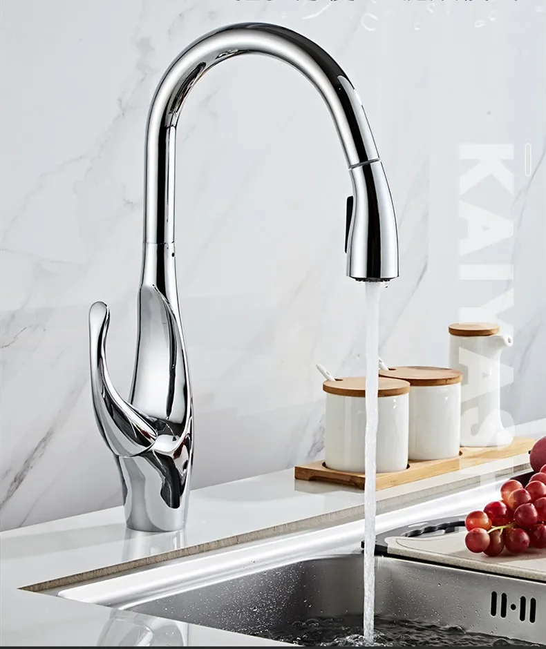 Kitchen Faucets Chrome Sink Faucet Kitchen Sink Single Lever Pull Out Spout Brass Mixers Tap Hot Cold Water Crane