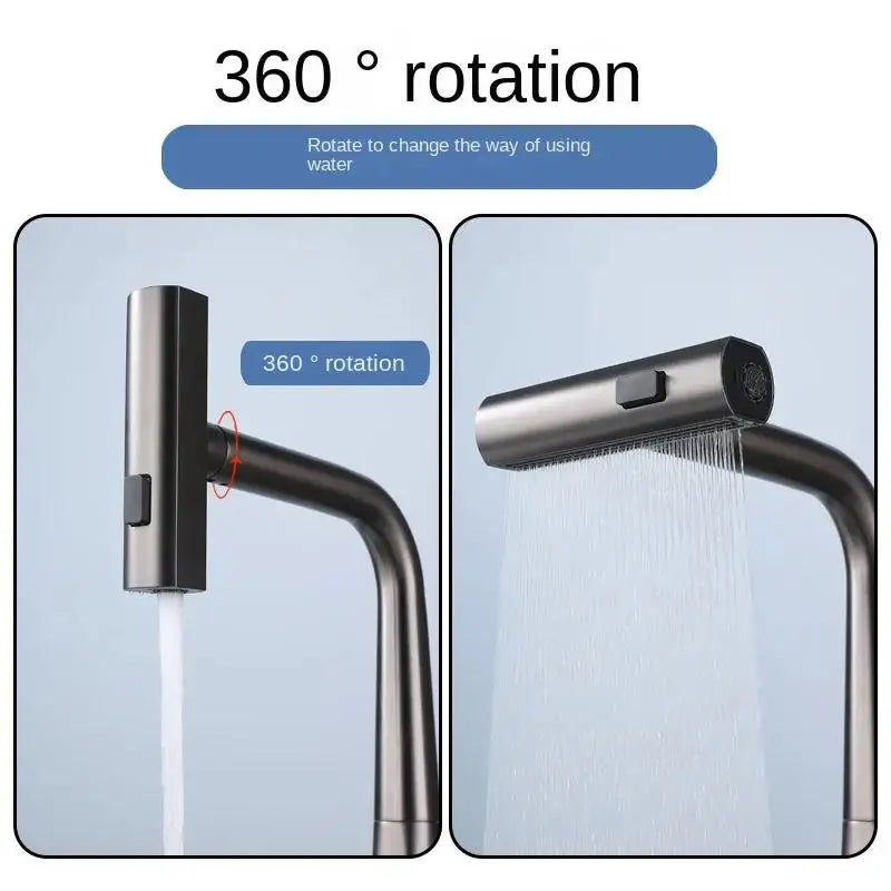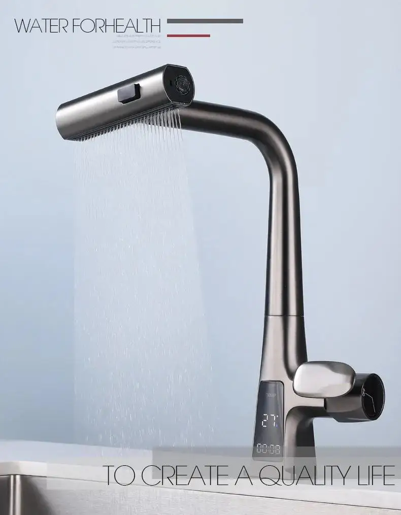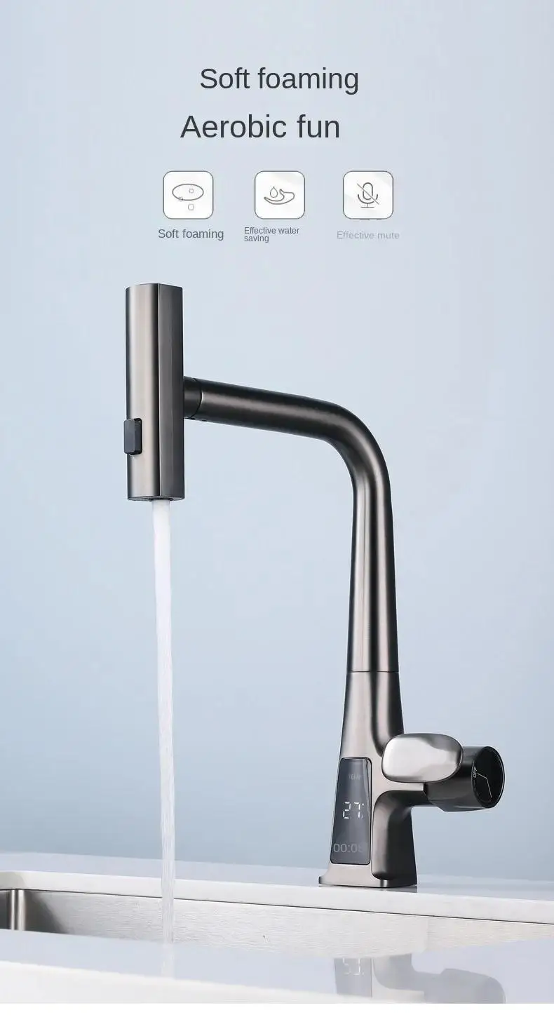 Kitchen Household Rotating and Stretchable Sink Digital Display Faucet, Waterfall Multifunctional Pull Kitchen Sink Faucet