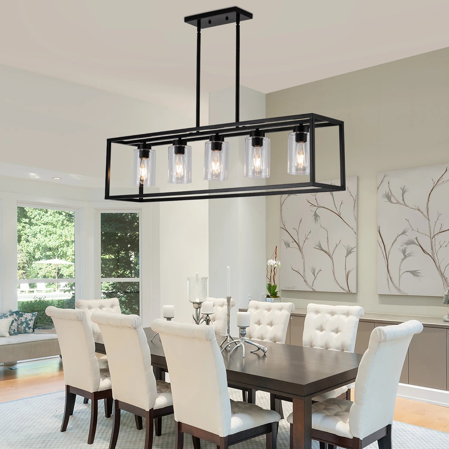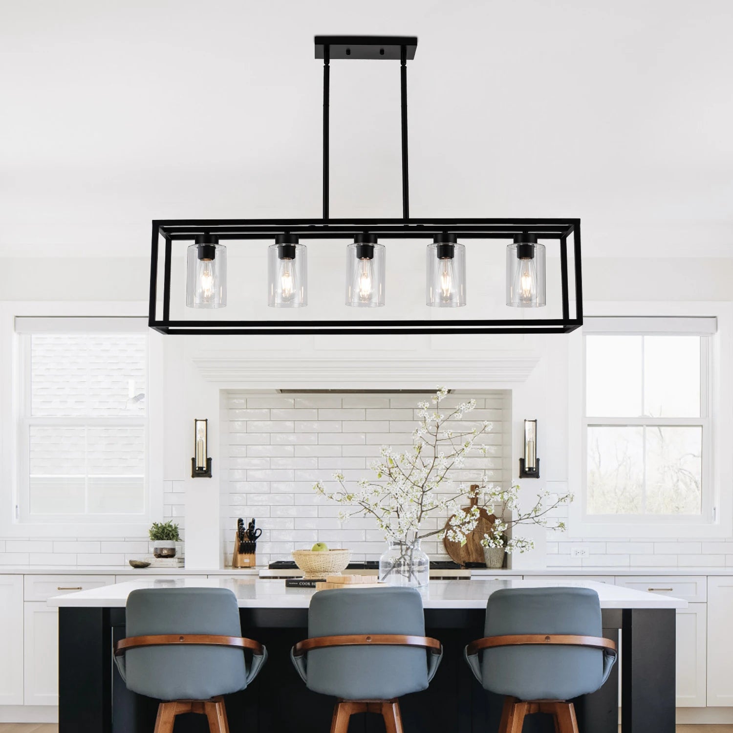 Kitchen Island Light Farmhouse Lustres Dining Room Retangular Pendant Lighting 5-light fixture