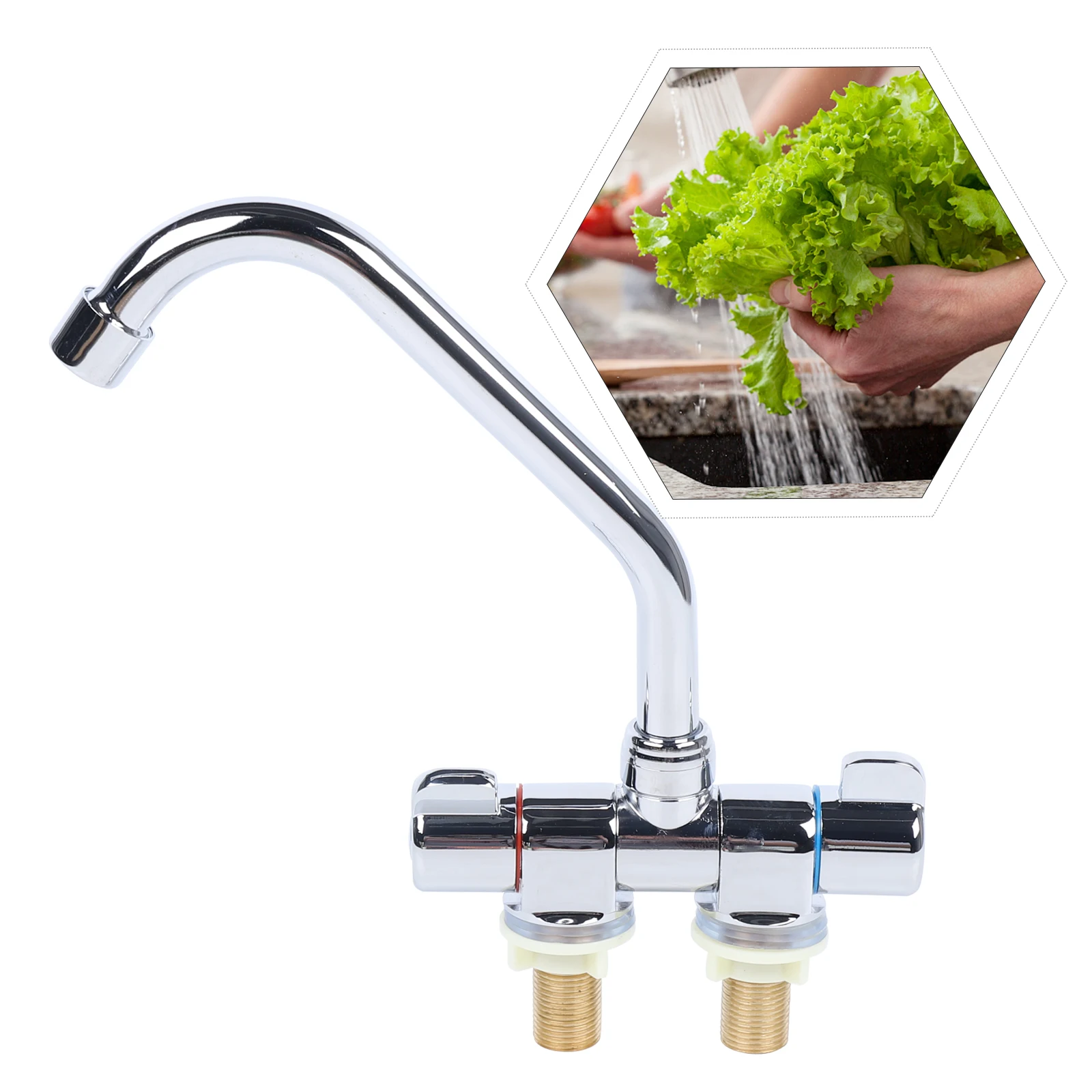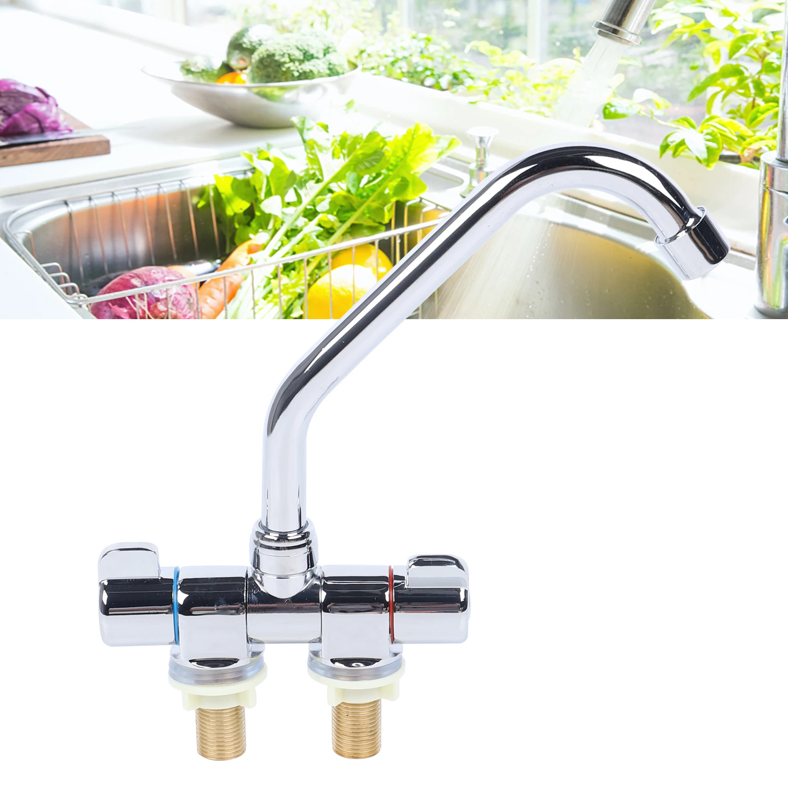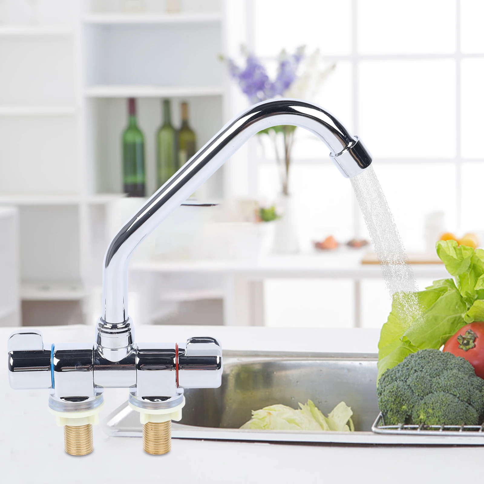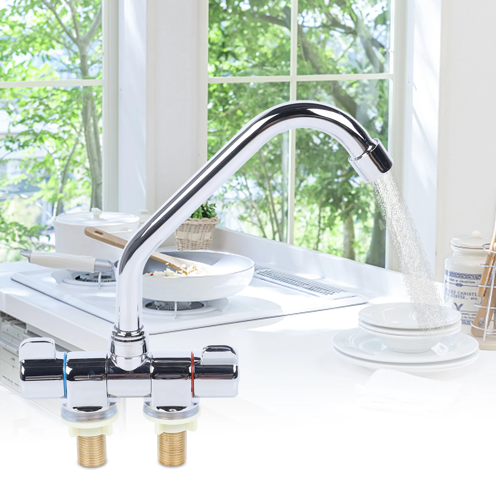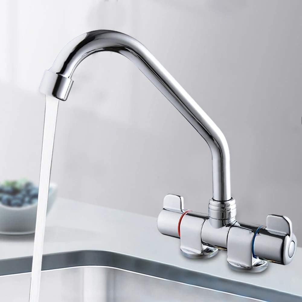 Kitchen Sink Water Faucet Double Handle Hot & Cold Water Mixer Tap 360° Rotating