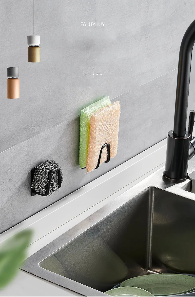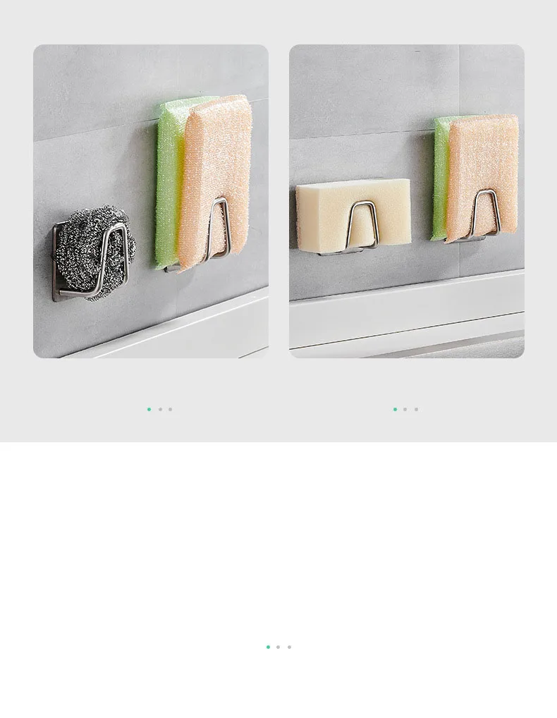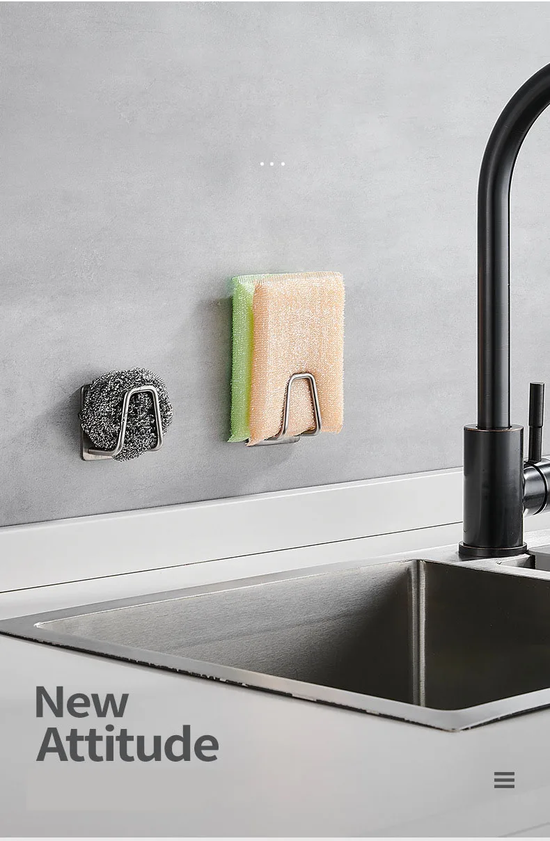 Kitchen Stainless Steel Sink Sponges Holder Self Adhesive Drain Drying Rack Kitchen Wall Hooks Accessories Storage Organizer