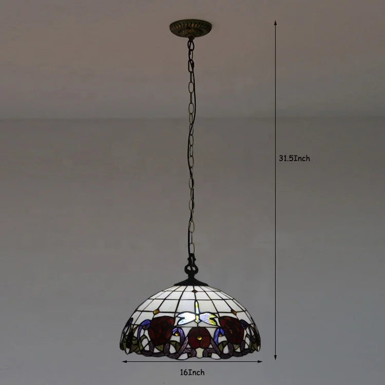 LongHuiJing Tiffany Pendant Lights 2 Light 16 Inches Wide Victorian Antique Style Stained Glass Hanging Lamp for Kitchen