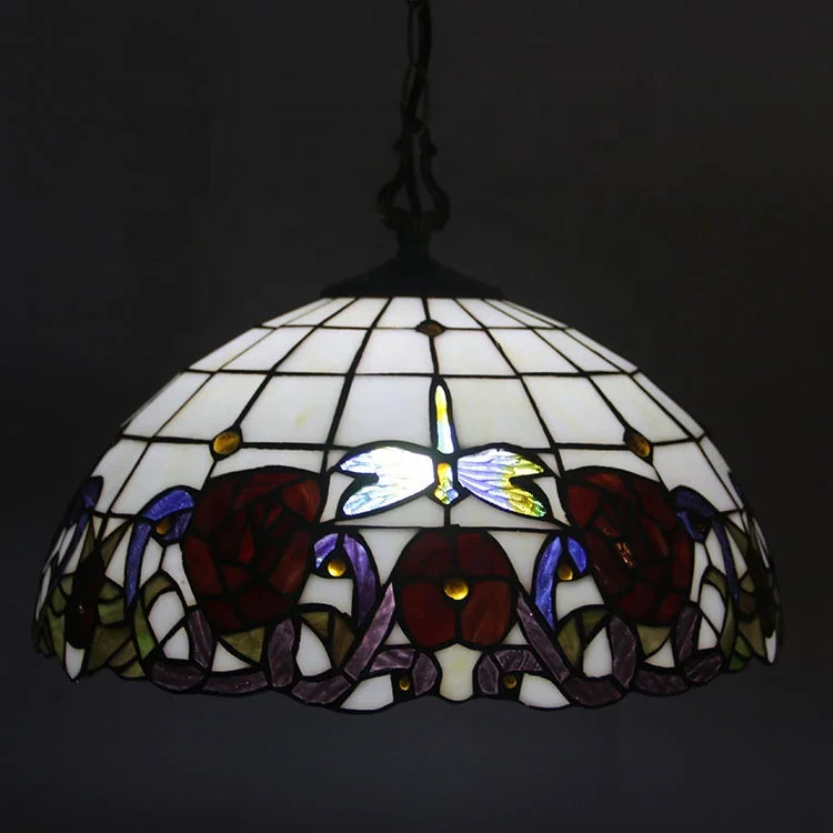 Material: | Stained glass lampshade, Metal hanging hardware fixture | |