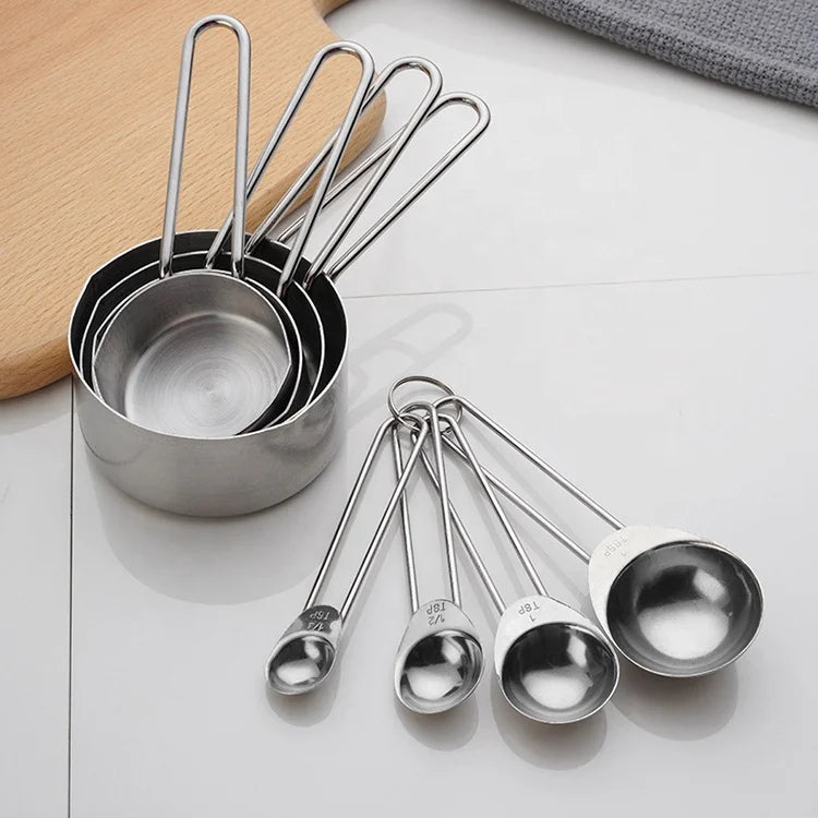 Measuring Cups and Spoons Set Stainless Steel 4 Pcs Rings Accessories Kitchen Metal Tools Box Packing kitchen Tools
