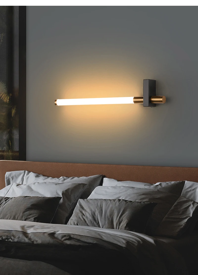 Mirror Wall Lamp LED Modern Simple Living Room Bedroom Bedside Wall Light Study Corridor Background Decoration Strip Wall Lamps