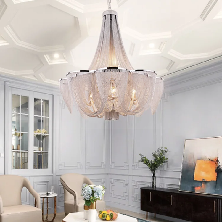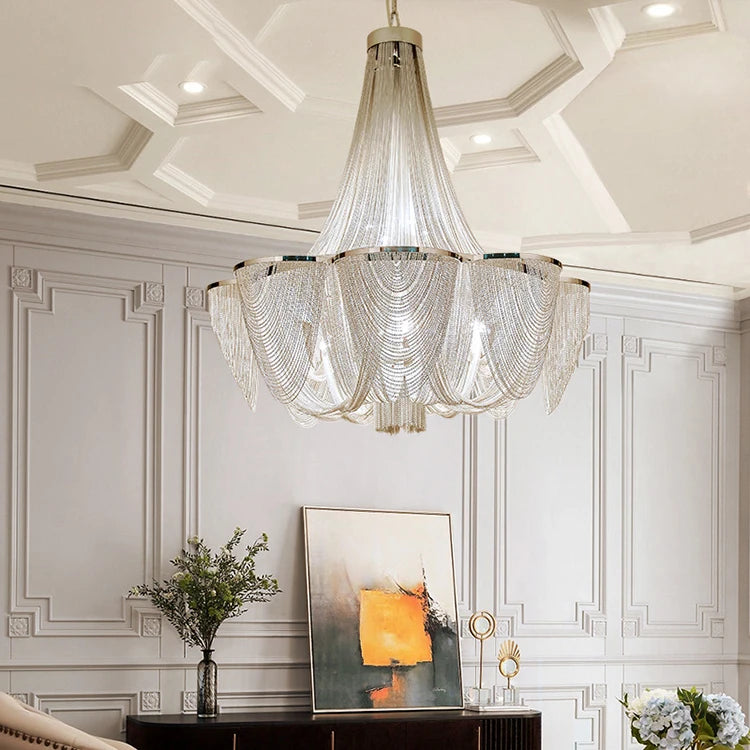 Increase quantity for Modern Light Luxury Living Split-level Creative Aluminum Chain Tassel Hotel Staircase Pendant Lamp