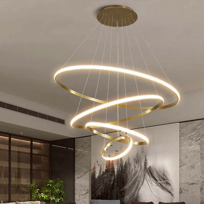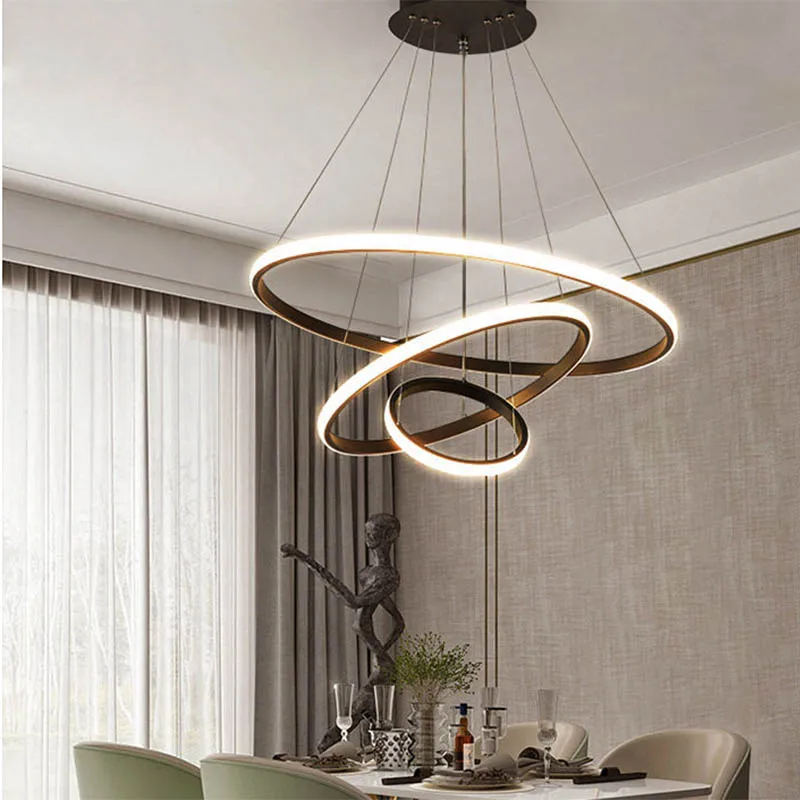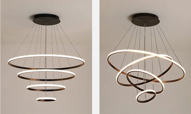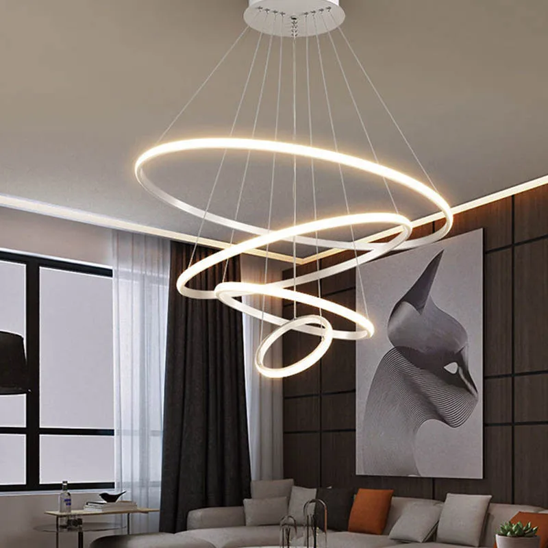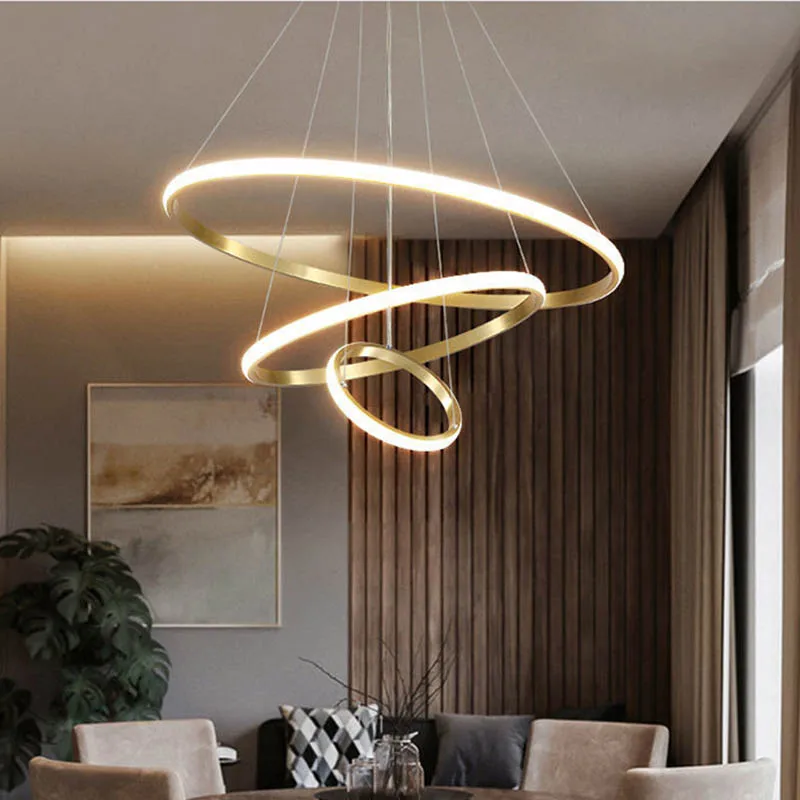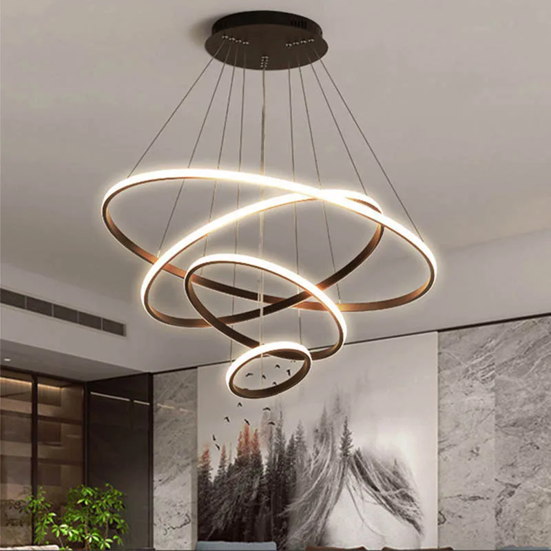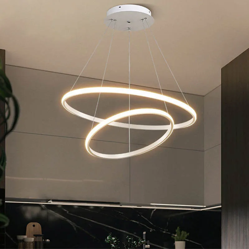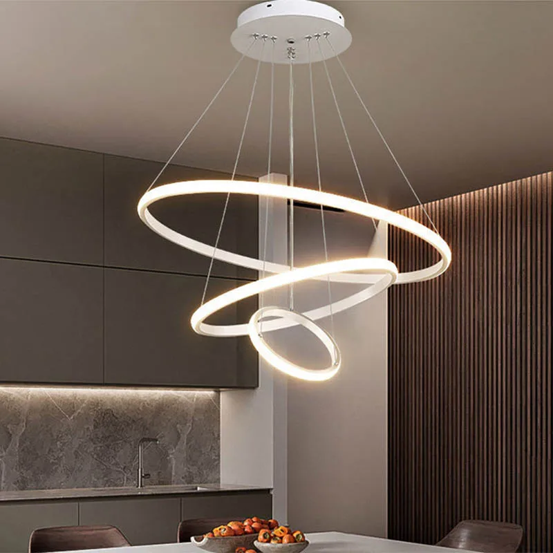 Modern Pendant Lamp LED 3/4/5 Rings Circle Ceiling Hanging Chandelier Living Dining Room Kitchen Lighting Fixture
