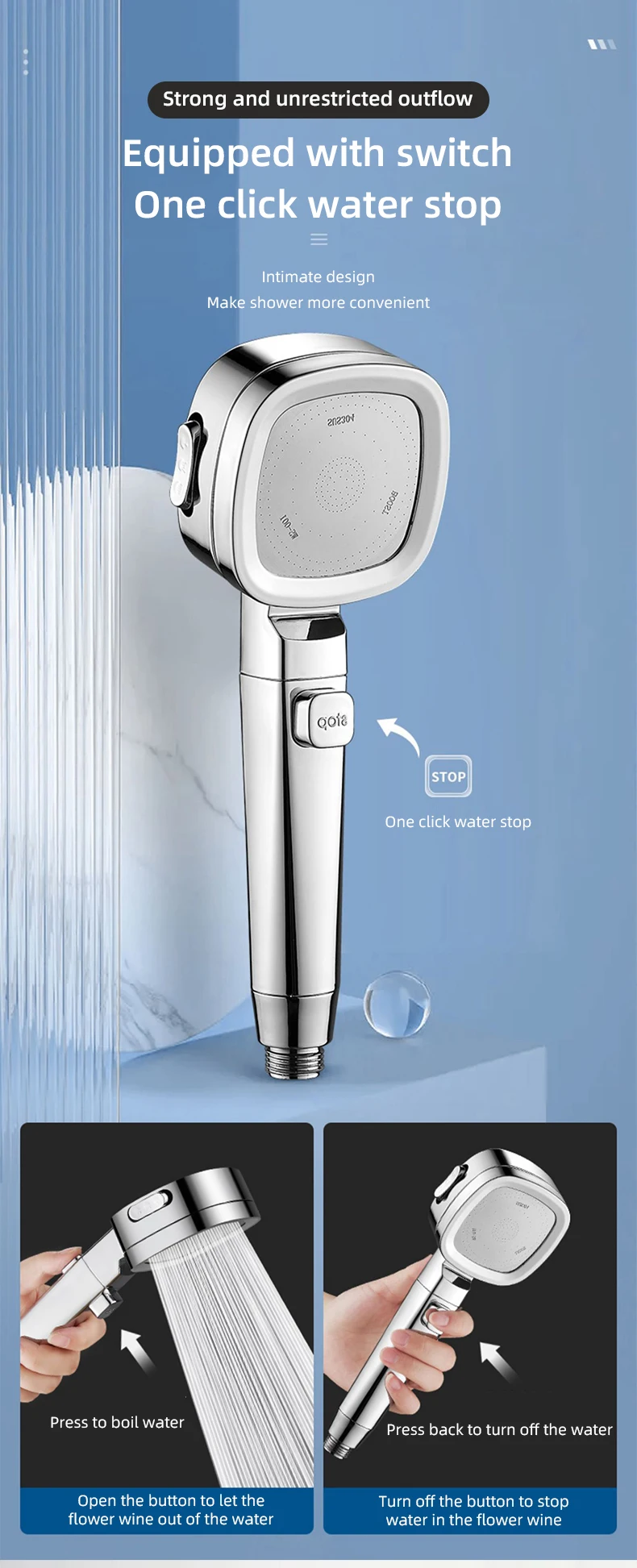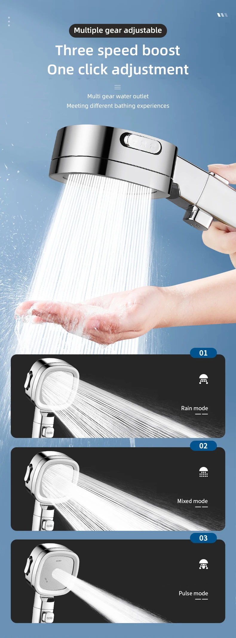 Decrease quantity for New 3 Speed Strong Pressurized Shower Head Square Handheld Shower Nozzle Household Shower Accessories