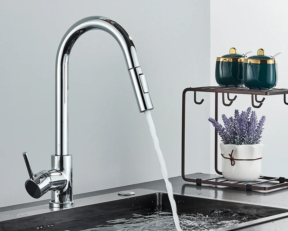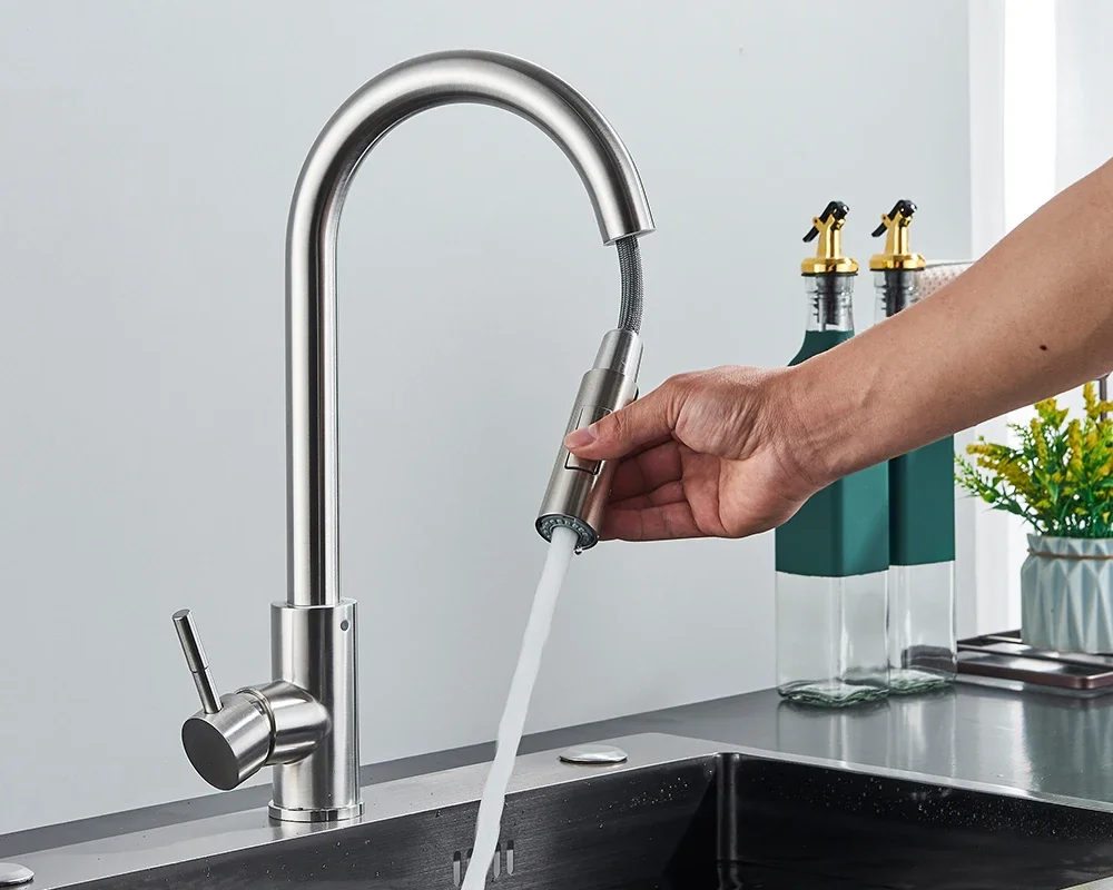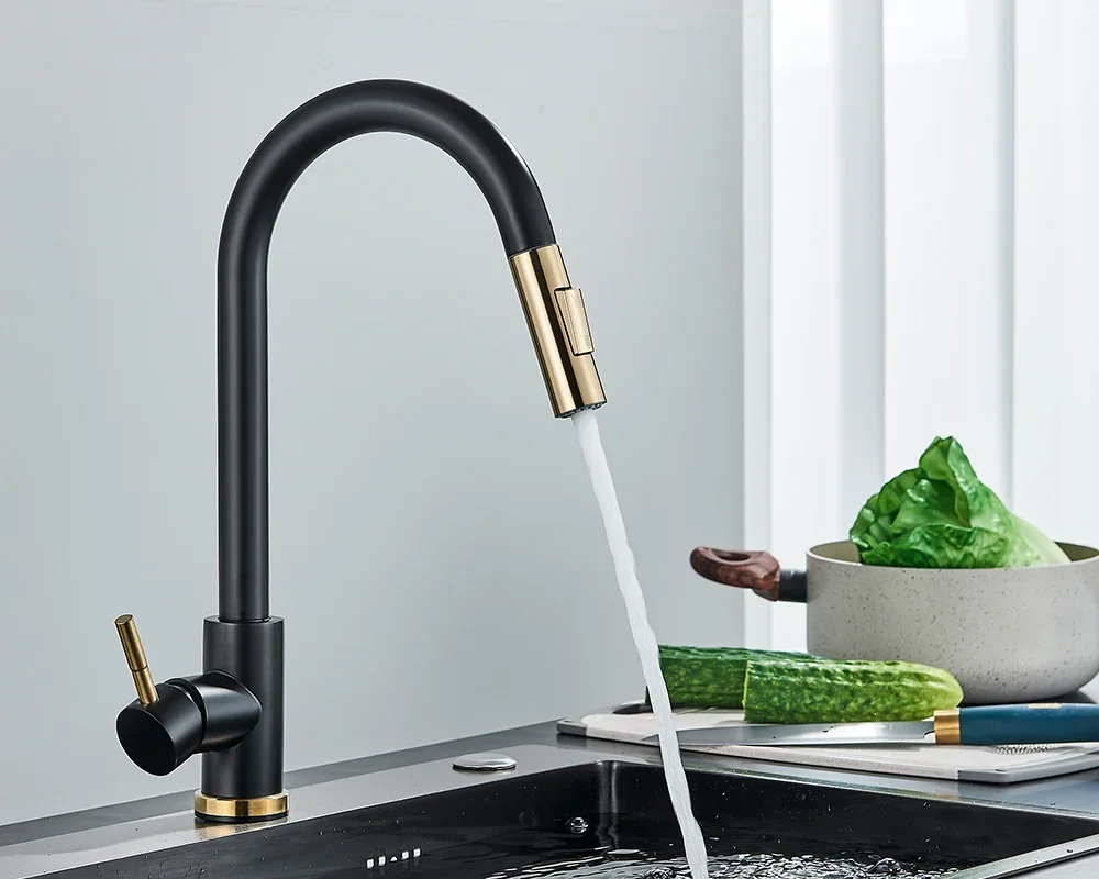 Brushed Gold Kitchen Faucet Pull Out Kitchen Sink Water Tap Single Handle Mixer Tap 360 Rotation Kitchen Shower Faucet