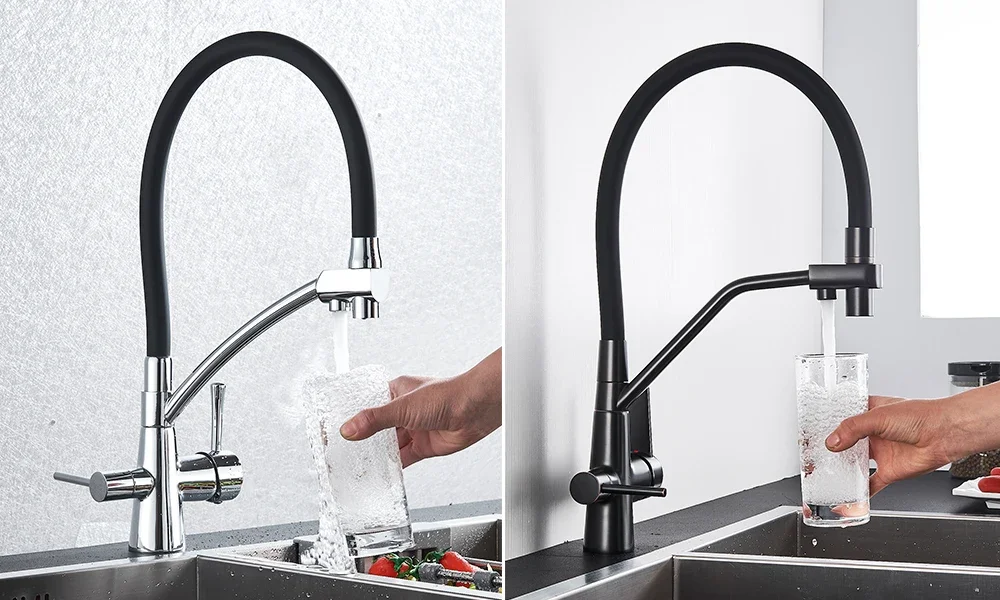 Filter Water Kitchen Faucet 2 in 1 Black Pull Down Pure Water Sink Faucets for Kitchen Deck Swivel Hot Cold Mixer Tap