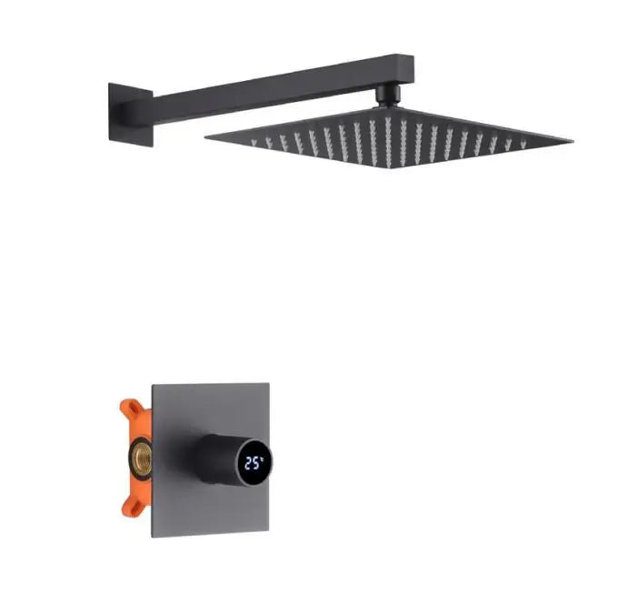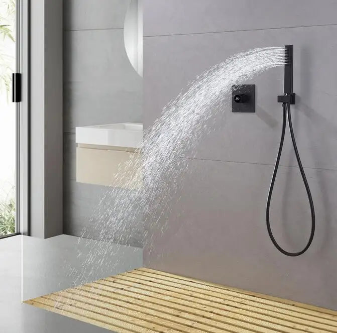 Single Function Matte Black Digital Display Shower Valve Shower Faucet Set With Handheld Shower
