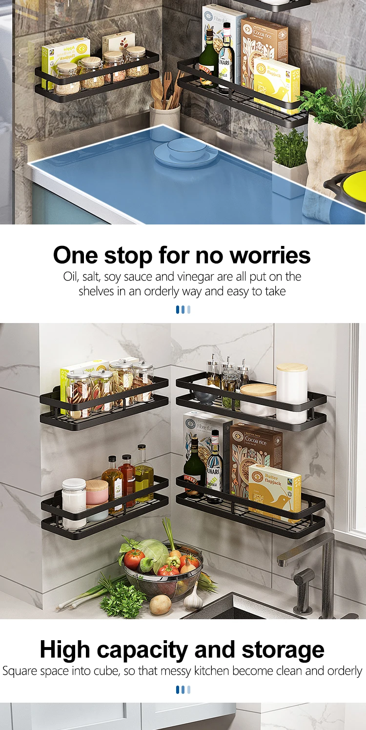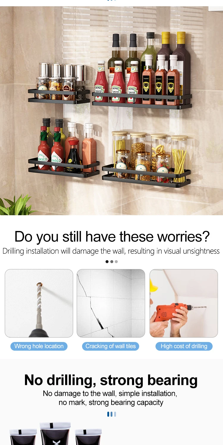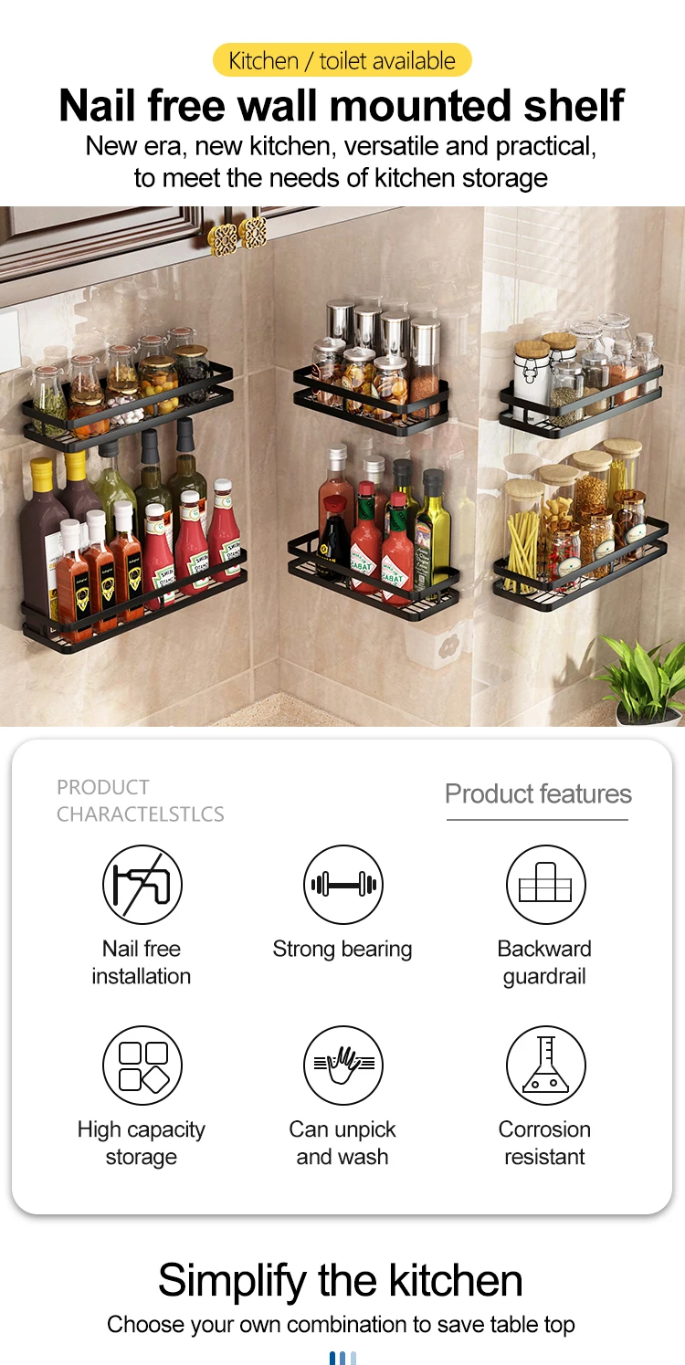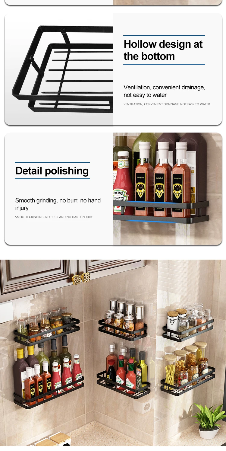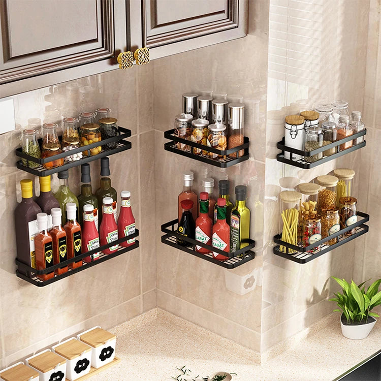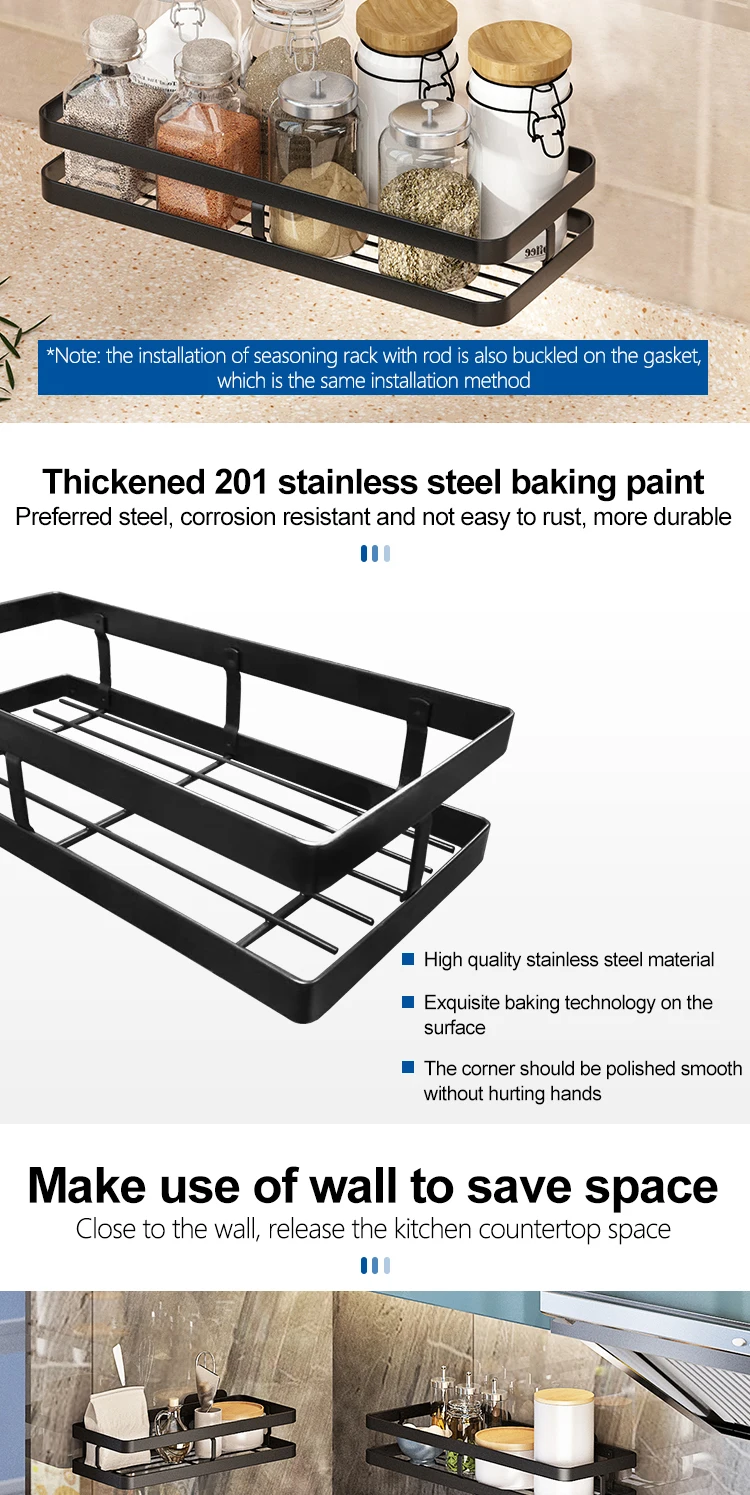 Stainless steel hanging wall mounted spice rack organizer metal for countertop set kitchen