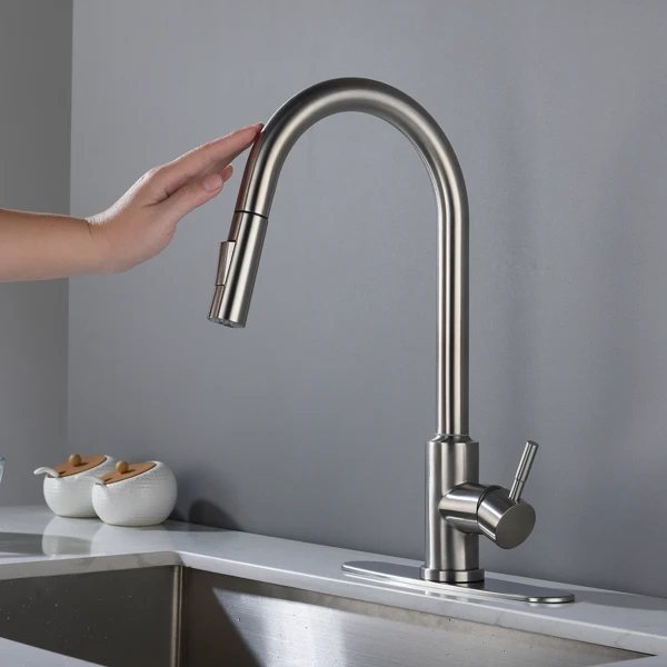 Touch Kitchen Faucet Mixing Hot&Cold with Pull Down Sprayer Brushed Nickel 3Colors[US-Stock]