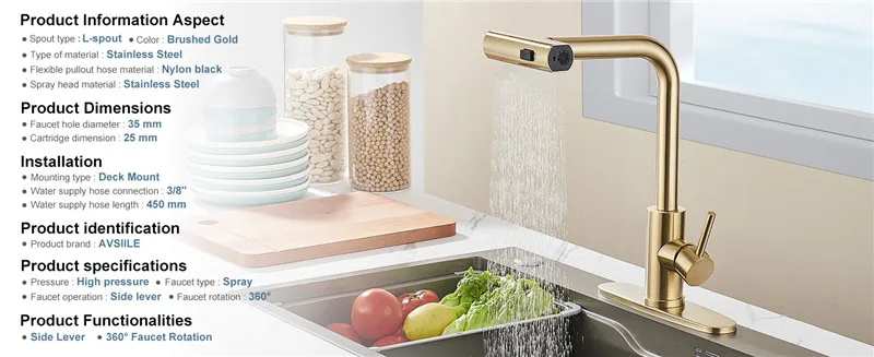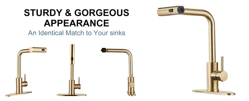 Brushed Gold Pull Out Kitchen Faucet Mixer Tap Grey/Niickel Water Mixer Tap Mixer Tap