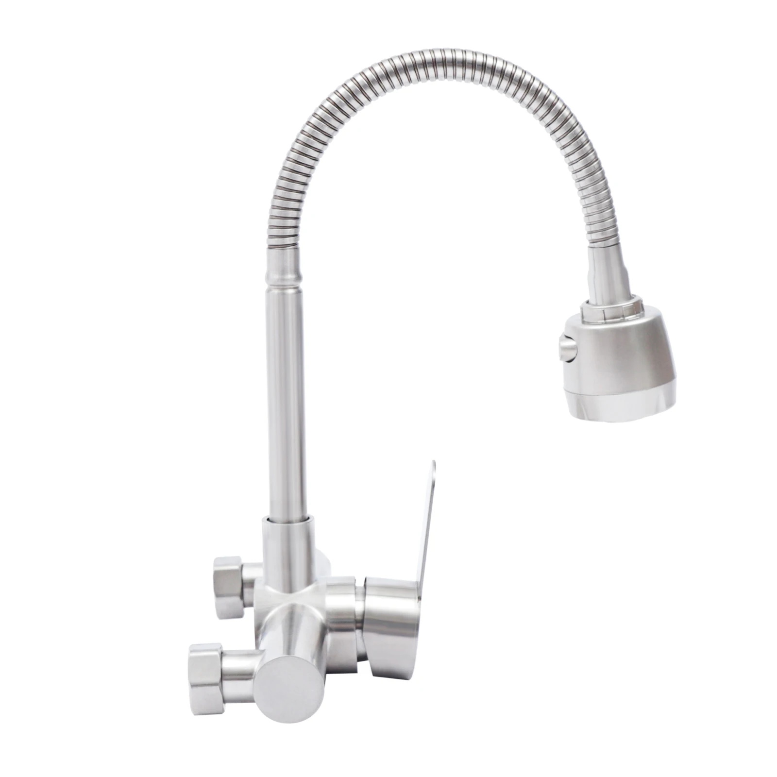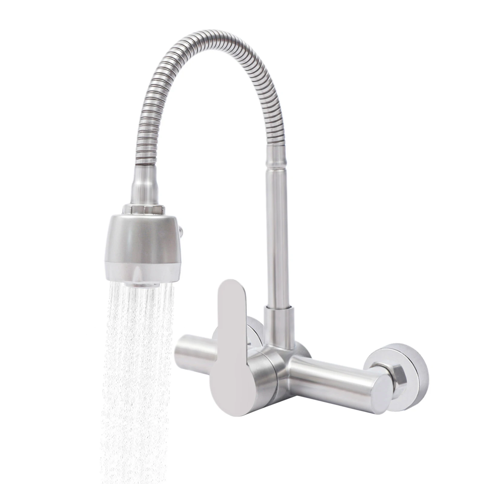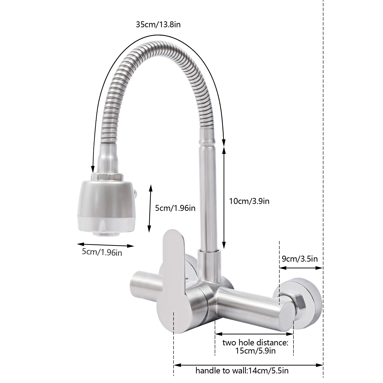Wall Mount Faucet Kitchen Restaurant Wash Sink Faucet Dual Control for Hot and Cold