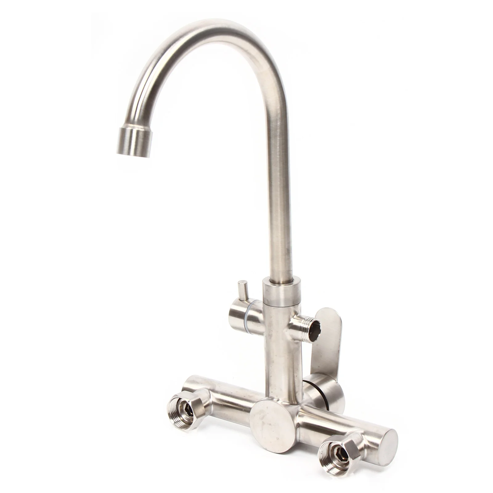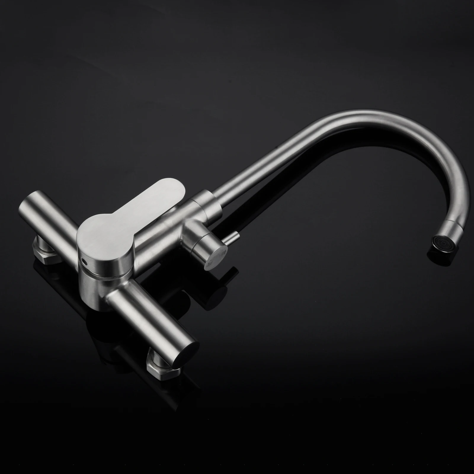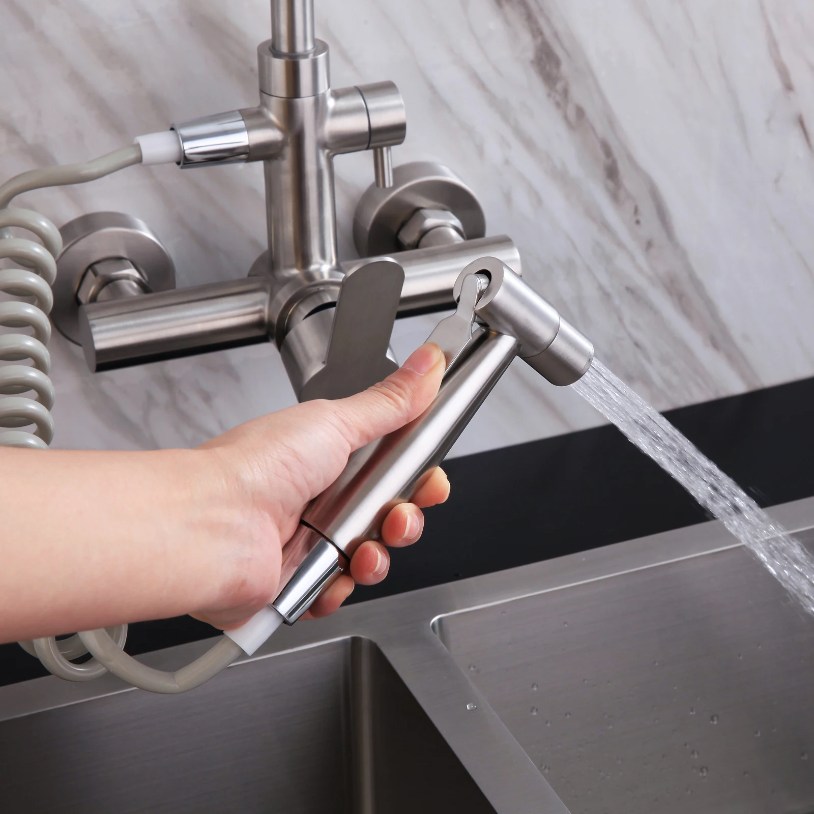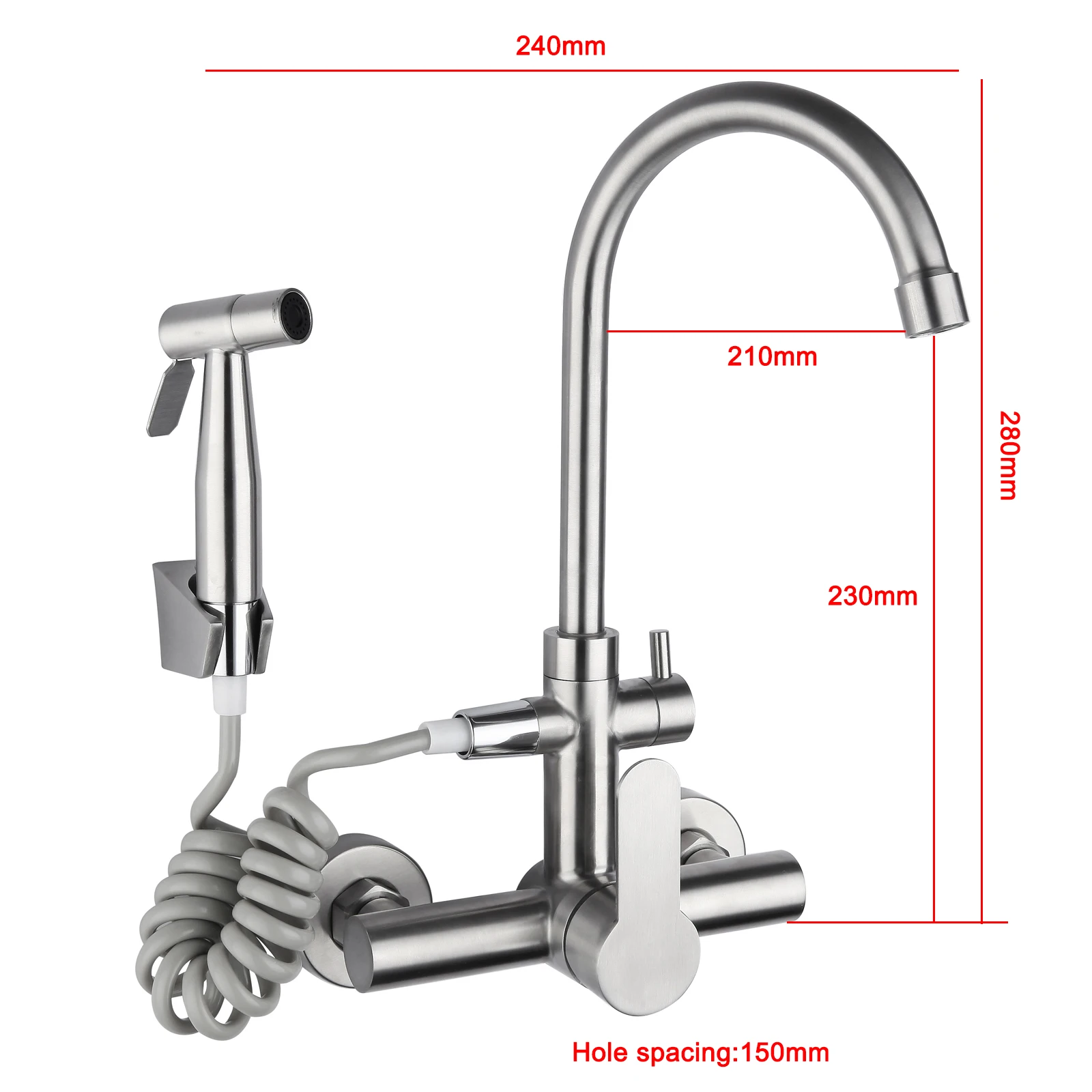 Wall Mount Kitchen Faucet Stainless Steel 360 Swivel Dual Hole Sink Tap Mixer Kitchen Faucet With Bidet Sprayer