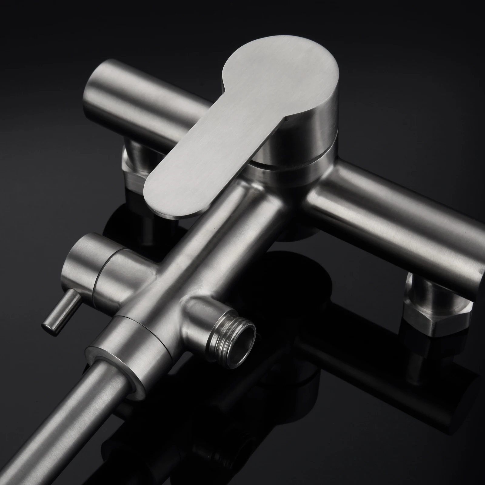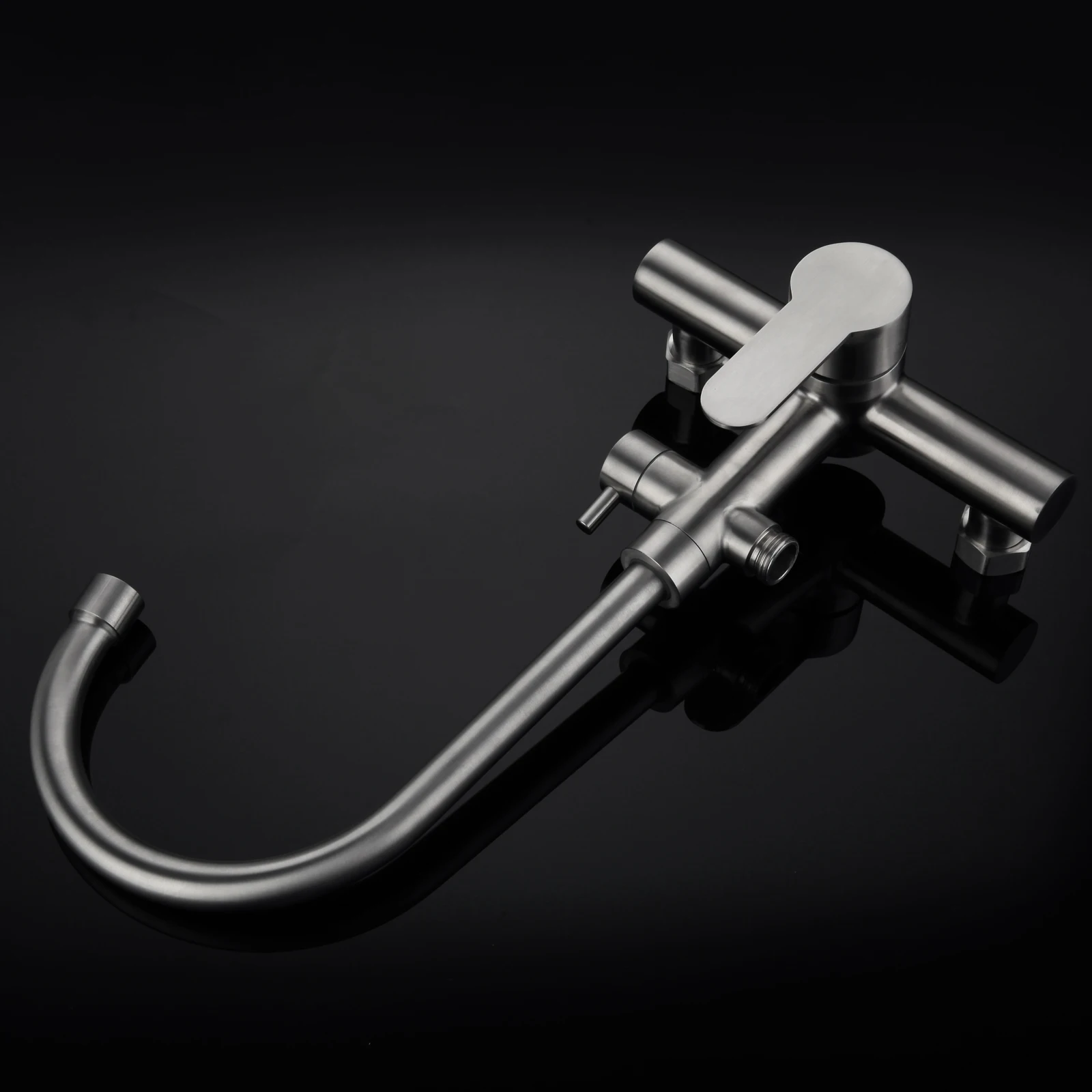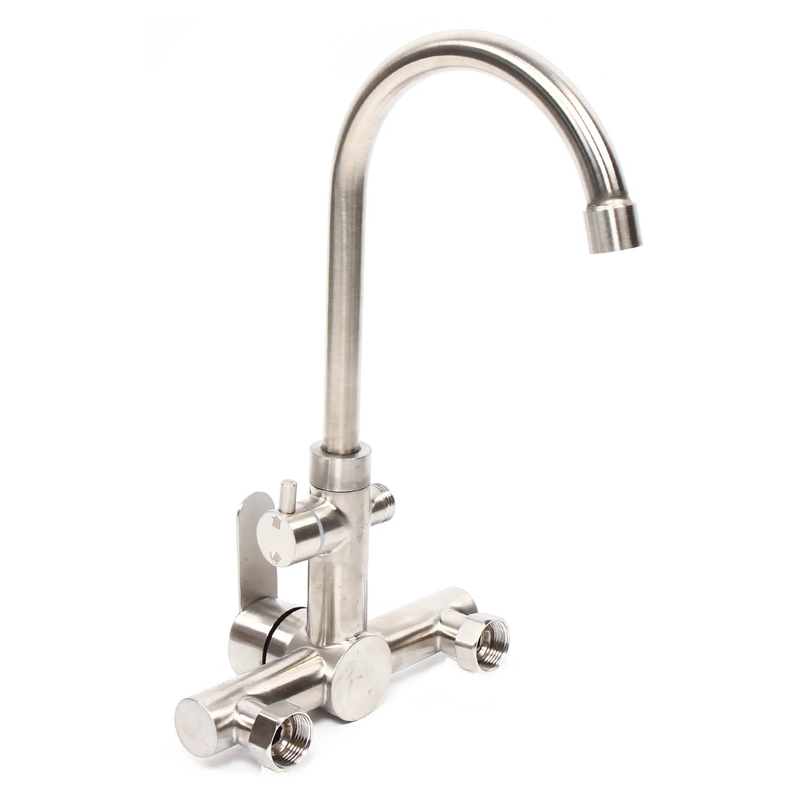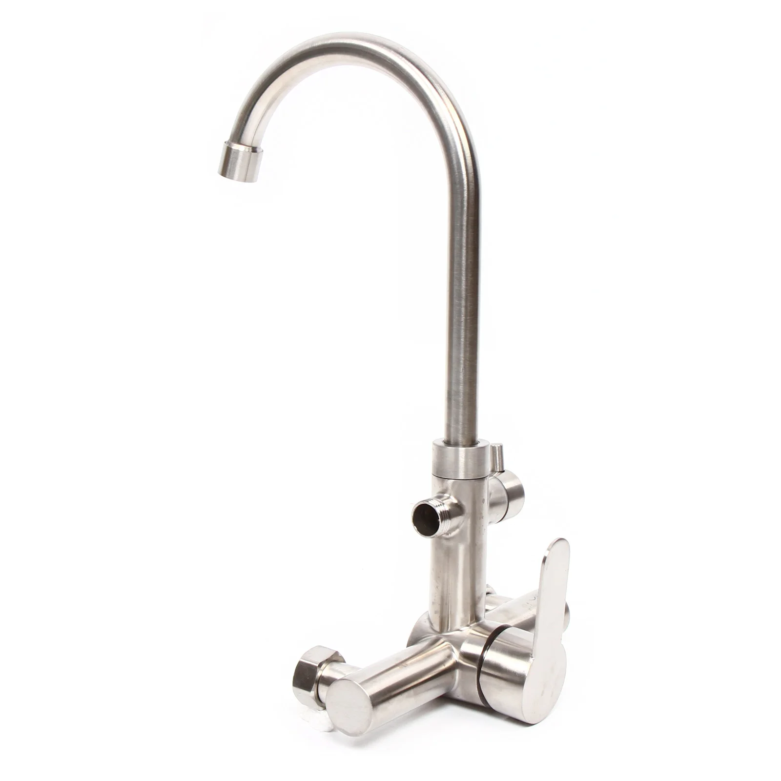 Wall Mount Kitchen Faucet Stainless Steel 360 Swivel Dual Hole Sink Tap Mixer Kitchen Faucet With Bidet Sprayer